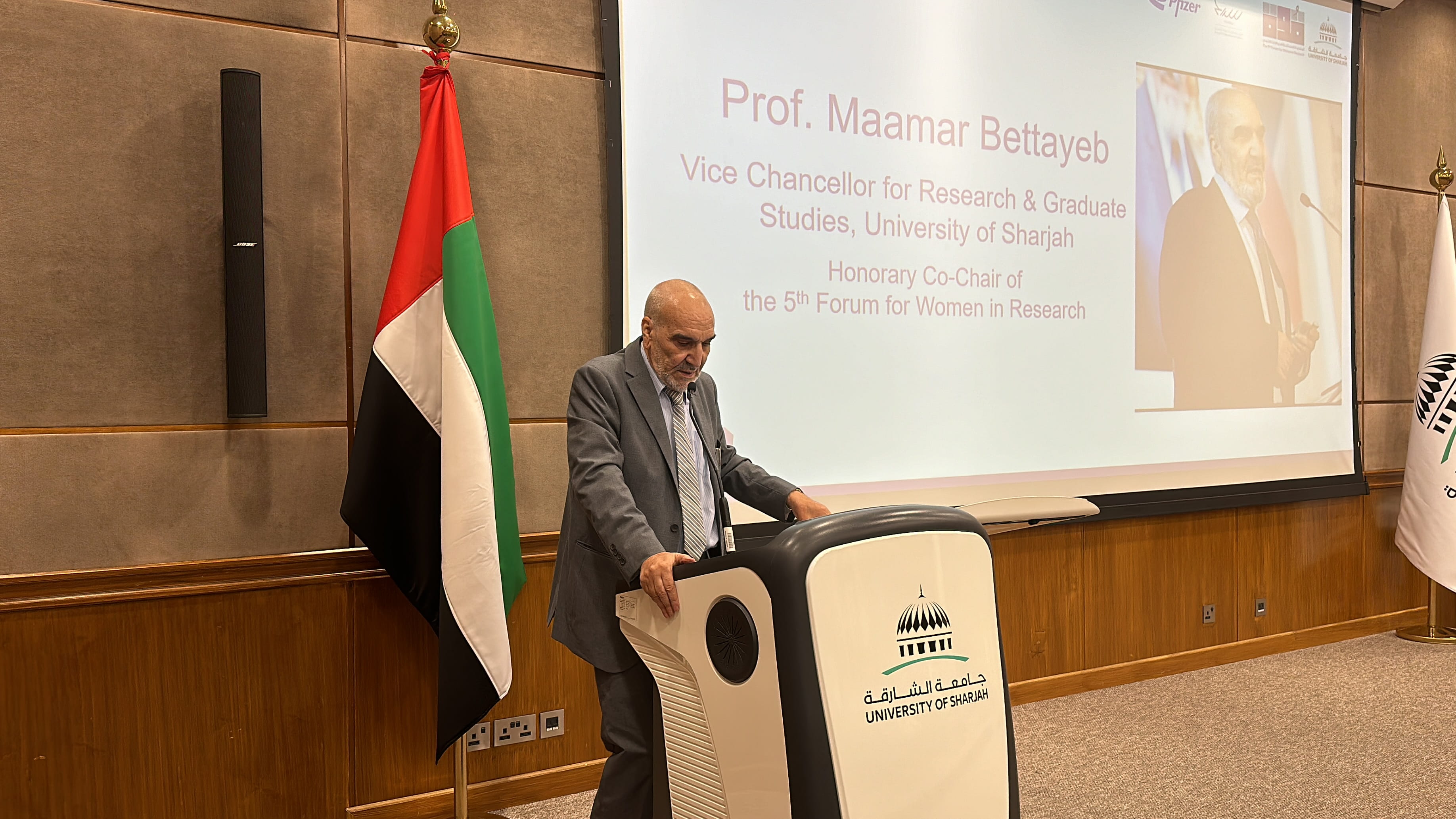أعلن الأستاذ الدكتور معمر بالطيب، نائب مدير جامعة الشارقة للبحث العلمي والدراسات العليا، في مؤتمر صحافي، أن الجامعة تستعد فبراير المقبل، لاستضافة فعاليات المنتدى الخامس للمرأة في البحث العلمي تحت شعار "قوة: معاً نبتكر لنشكّل المستقبل".