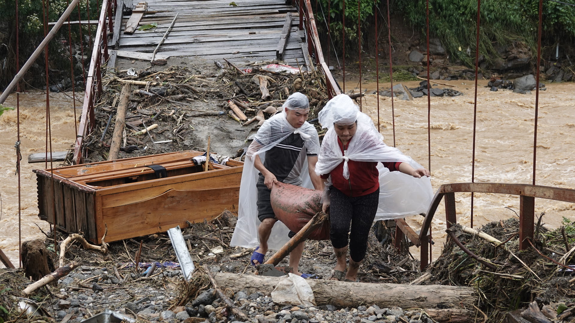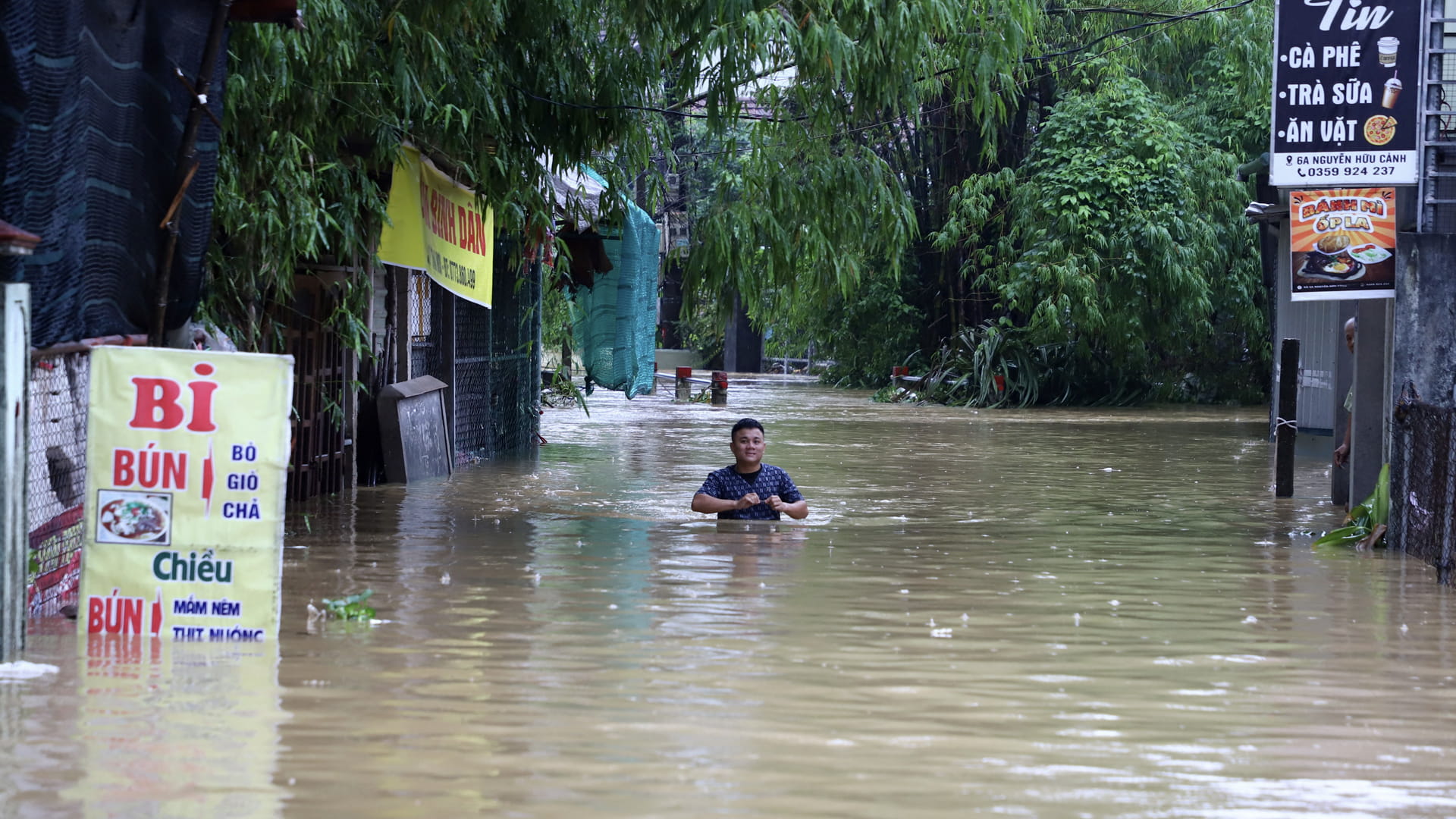 وصباح الثلاثاء، وصل منسوب مياه الفيضانات في بعض أنحاء مدينتي ين باي وتاي نغوين إلى أسطح المنازل المكونة من طابق واحد.