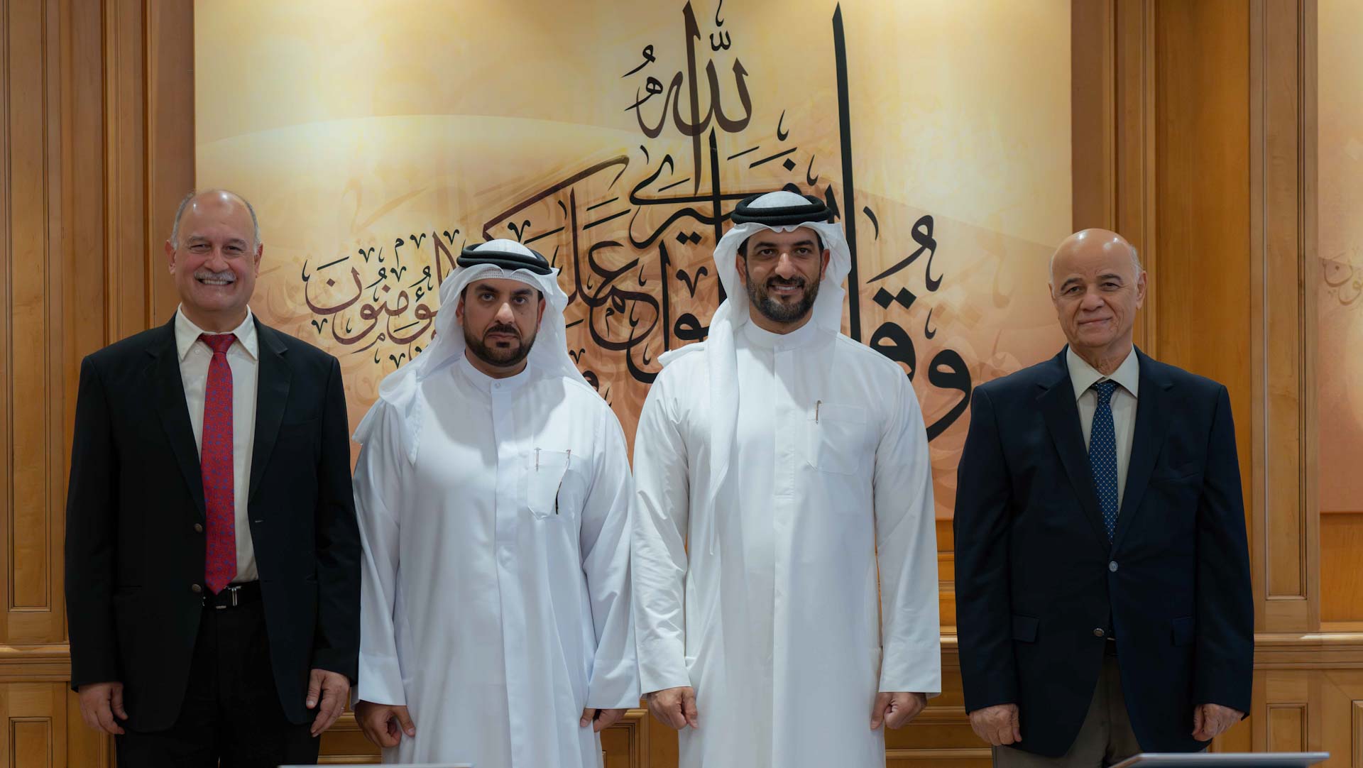 وقع الاتفاقية التي تنص على أن تقوم مؤسسة نفط الشارقة الوطنية بتمويل كرسي أستاذية باسم المؤسسة بجامعة الشارقة كل من الدكتور حميد مجول النعيمي، والمهندس حاتم الموسى.