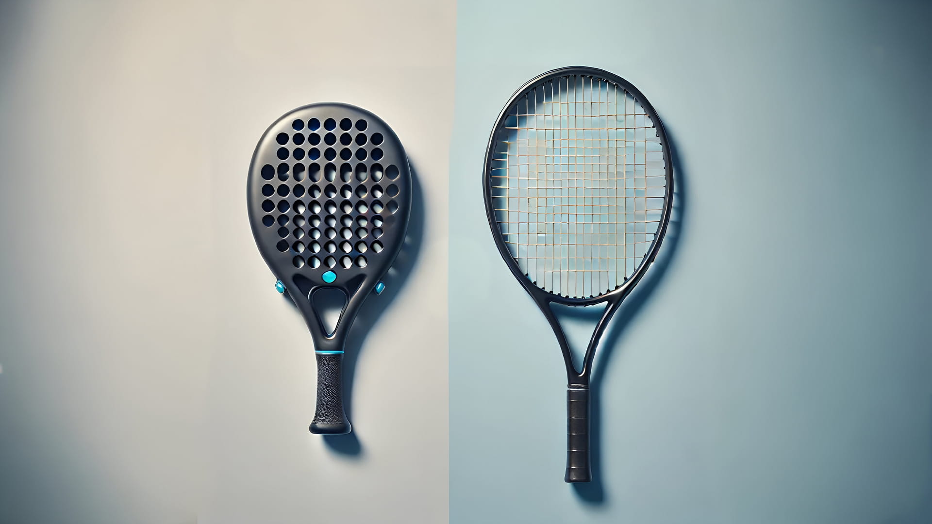 يختلف مضرب التنس عن مضرب البادل؛ إذ يمتلك مضرب البادل مقبضاً قصيراً، وسطحاً صلباً بحشوة رغوية، وقشرة خارجية مصنوعة من موادّ مختلفة، مثل: ألياف الكربون، والألياف الزجاجية، ومطّاط Eva، وتتخلَّله ثقوب لمُقاوَمة الهواء، كما أنّ حجمه أصغر مُقارنة بمضرب التنس، لذا يُعَدّ مثالياً لتسديد الضربات السريعة التي تُناسب اللعبة، أمّا مضرب التنس، فيتكوَّن من خيوط وتريّة مشدودة تتَّخِذ شكل الشبكة، ويتميَّز بطول مقبضه، كما أنّ حجمه كبير، ممّا يمنح اللاعب القوة الكافية لتسديد الضربات.