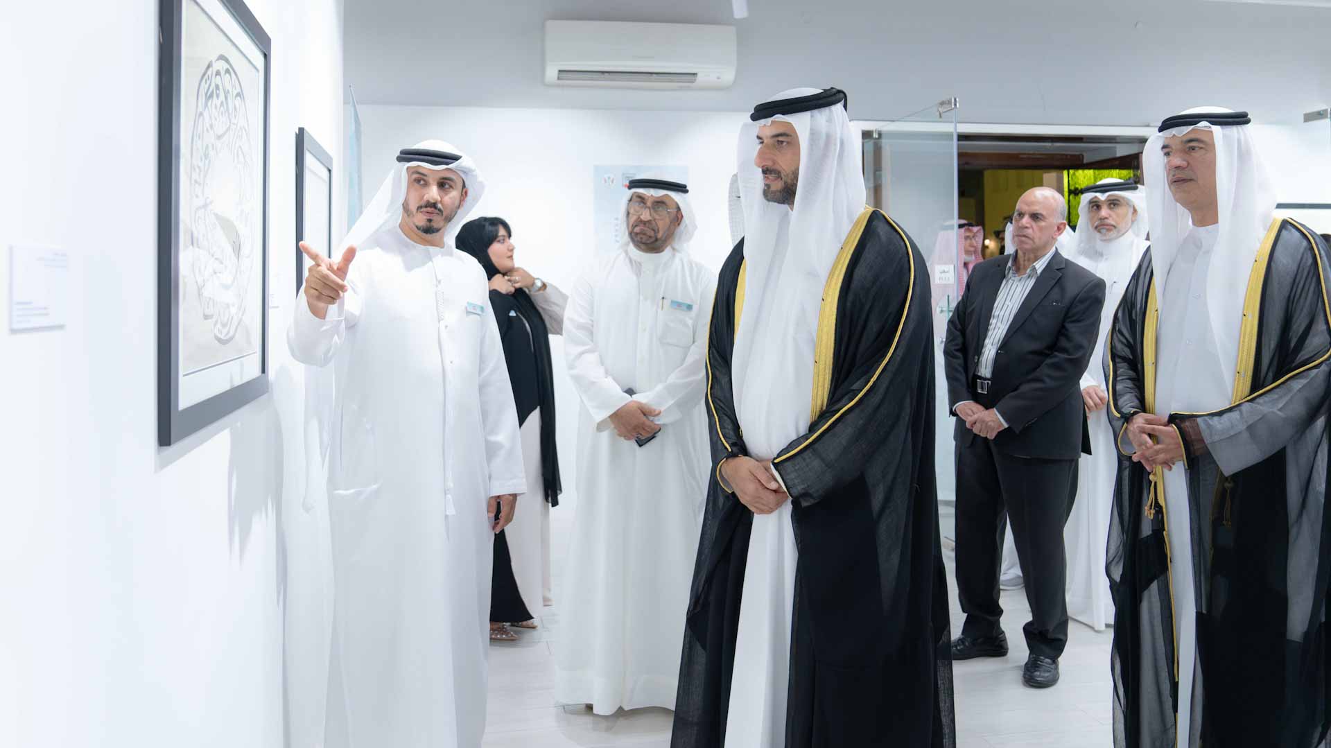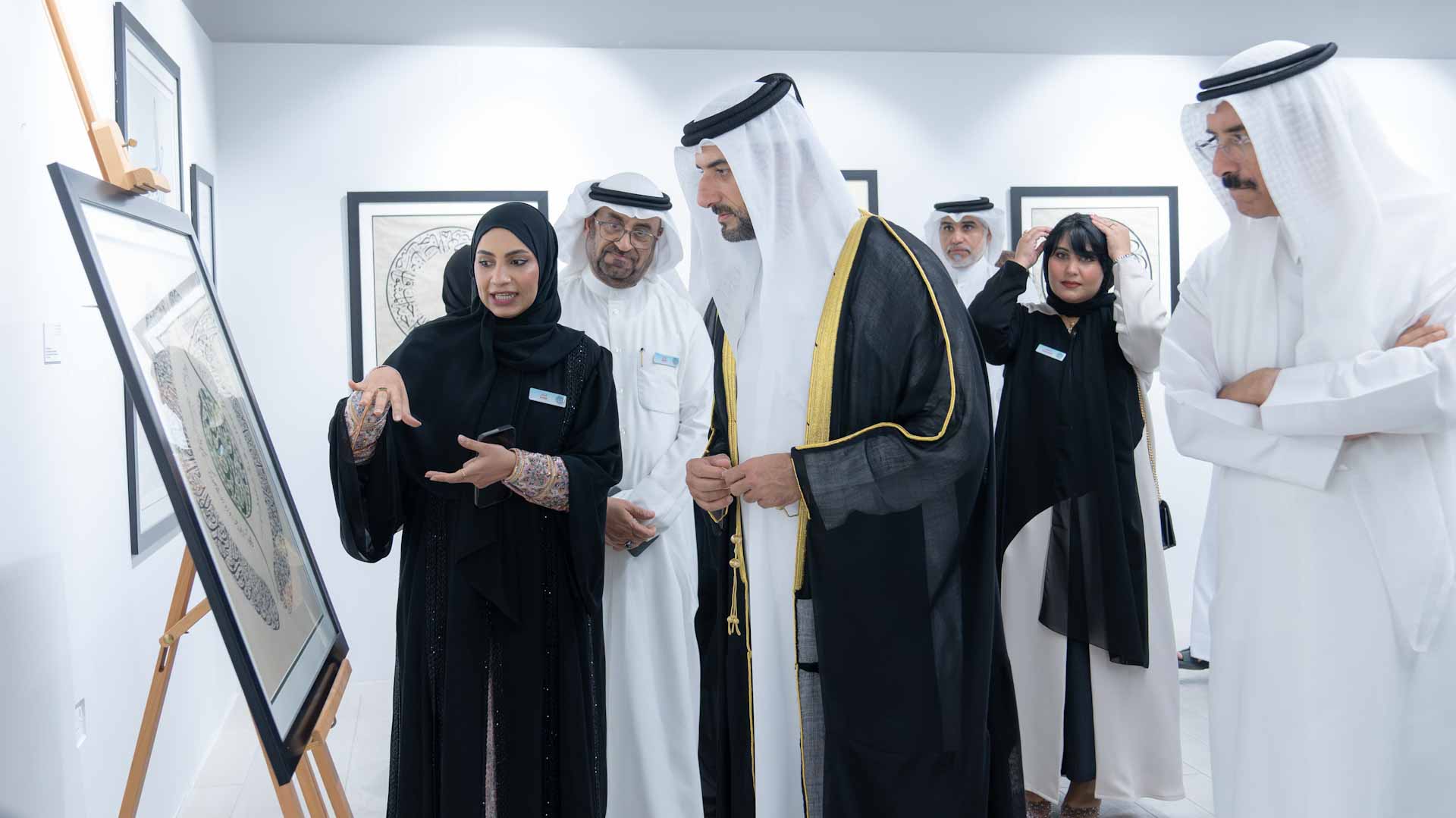 وفور وصول سموه، تفضل بزيارة المعرض العام، حيث استمع سموه إلى شرحٍ مفصّل عما يضمه المعرض من لوحاتٍ متنوعة توزعت ما بين الآيات القرآنية والقصائد بمختلف أنواع الخطوط، أنجزها عدد من الفنانين من دولة الإمارات العربية المتحدة، وغيرها من الدول العربية والإسلامية.