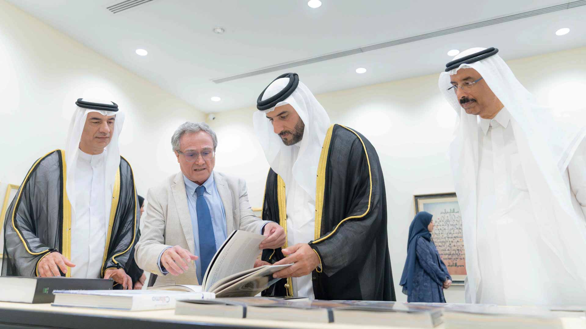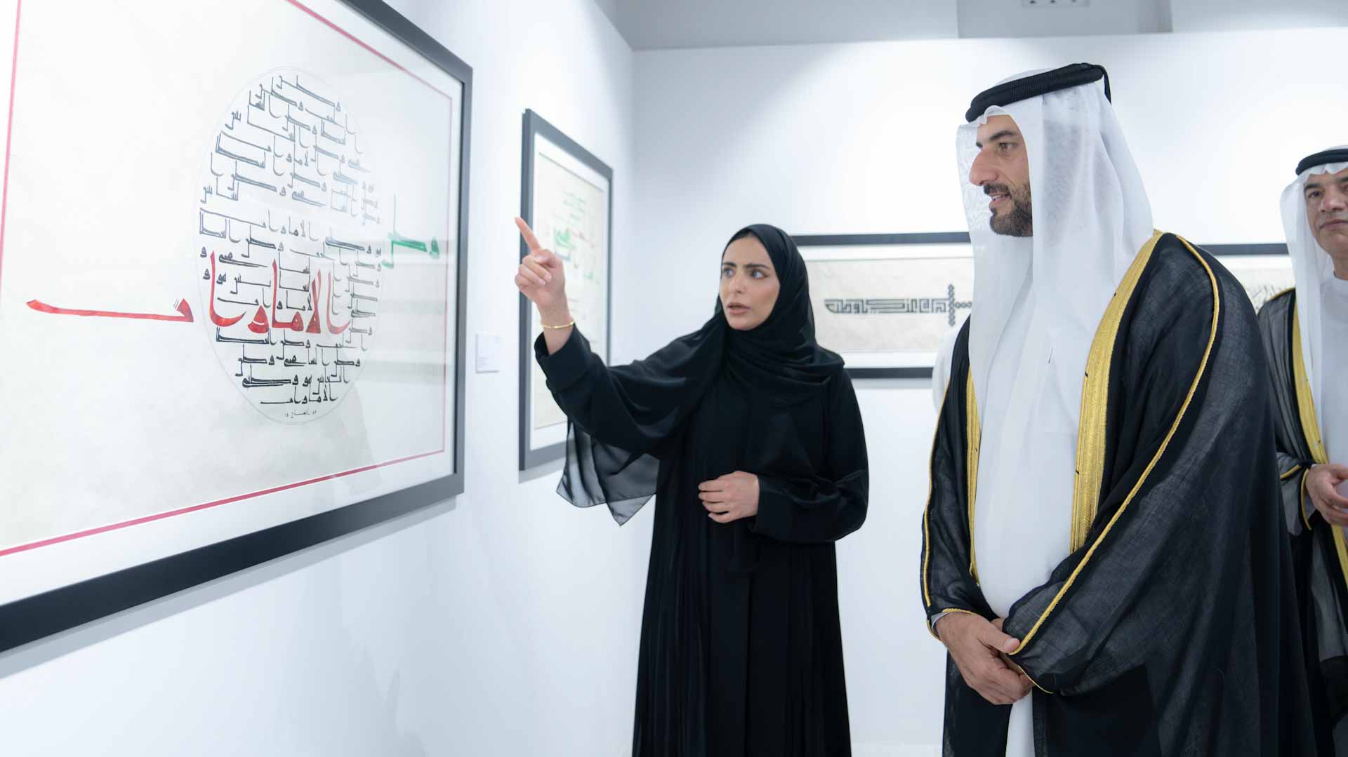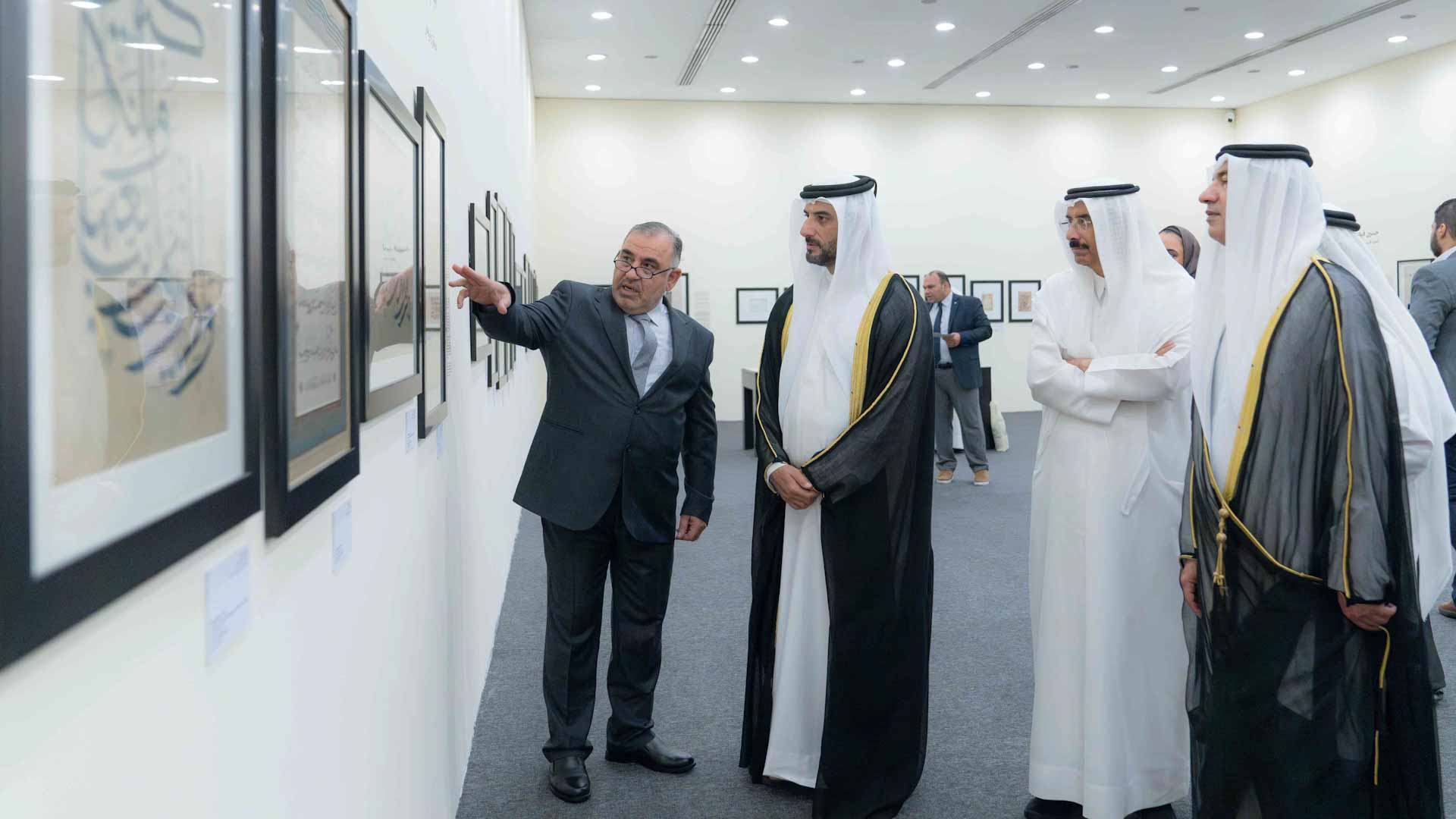 وزار سمو نائب حاكم الشارقة معرض "إحياء الخطوط" للخطاطين: أحمد فهيم من مصر، وجاسم معراج من الكويت، وحسين قيضي آبادي من إيران، وعمران البلوشي من الإمارات، وهيثم سلو من تركيا.
