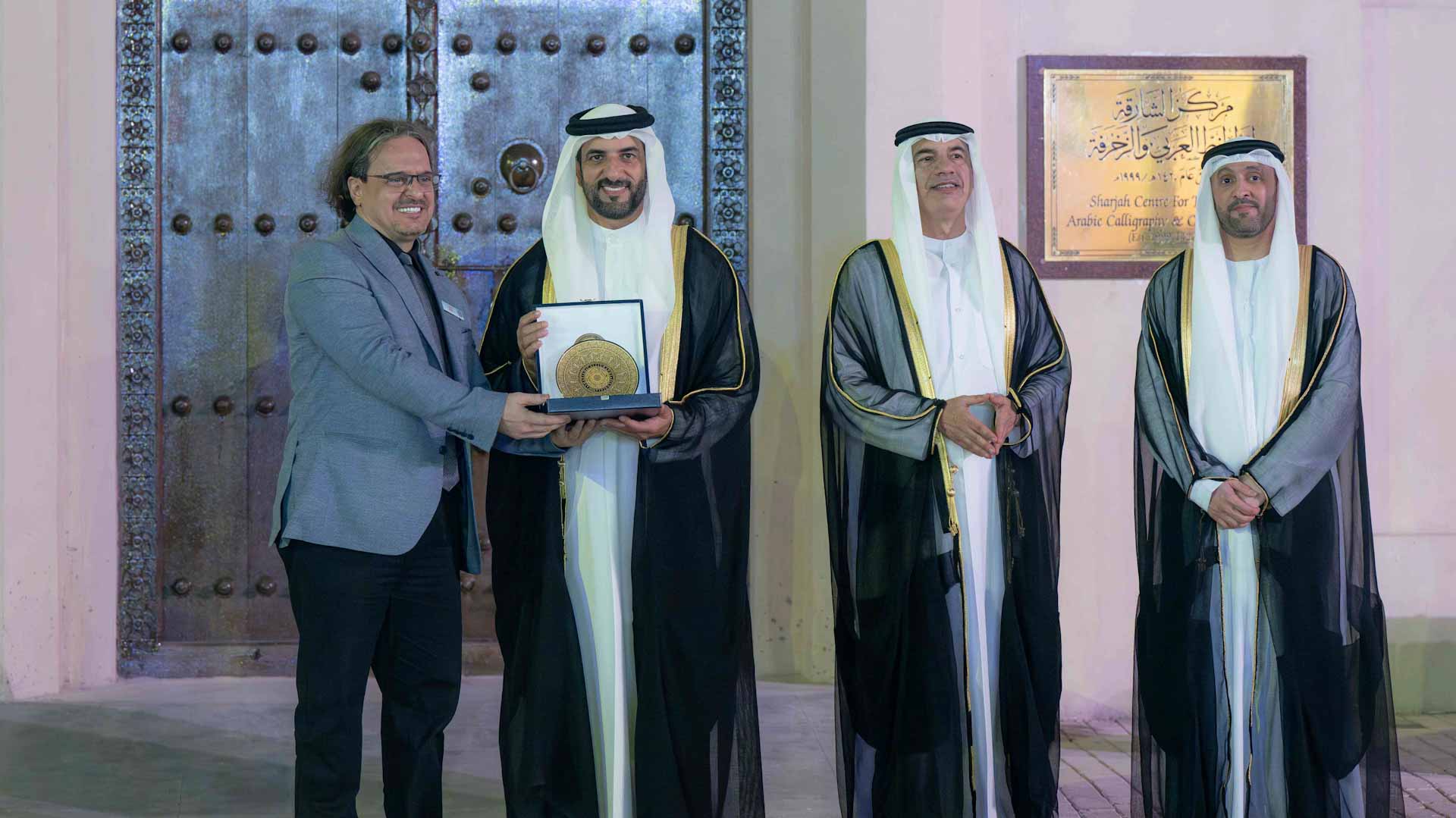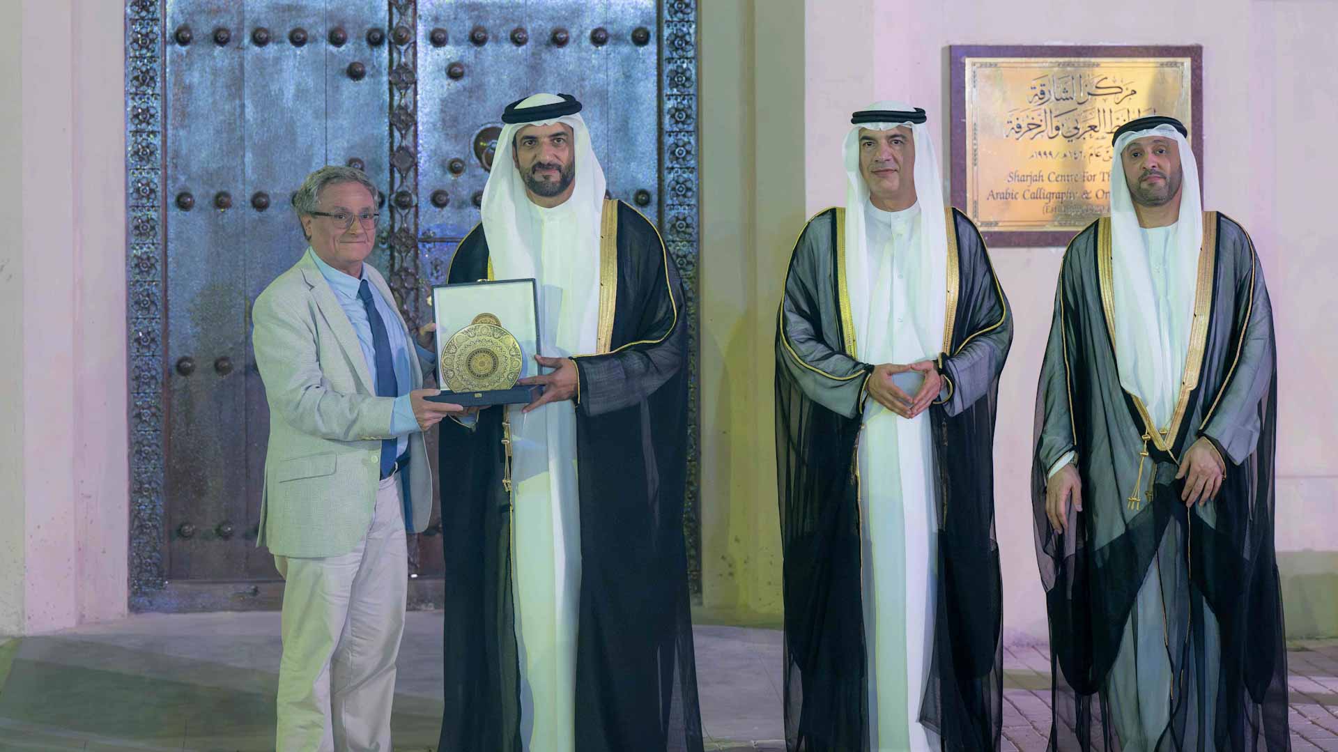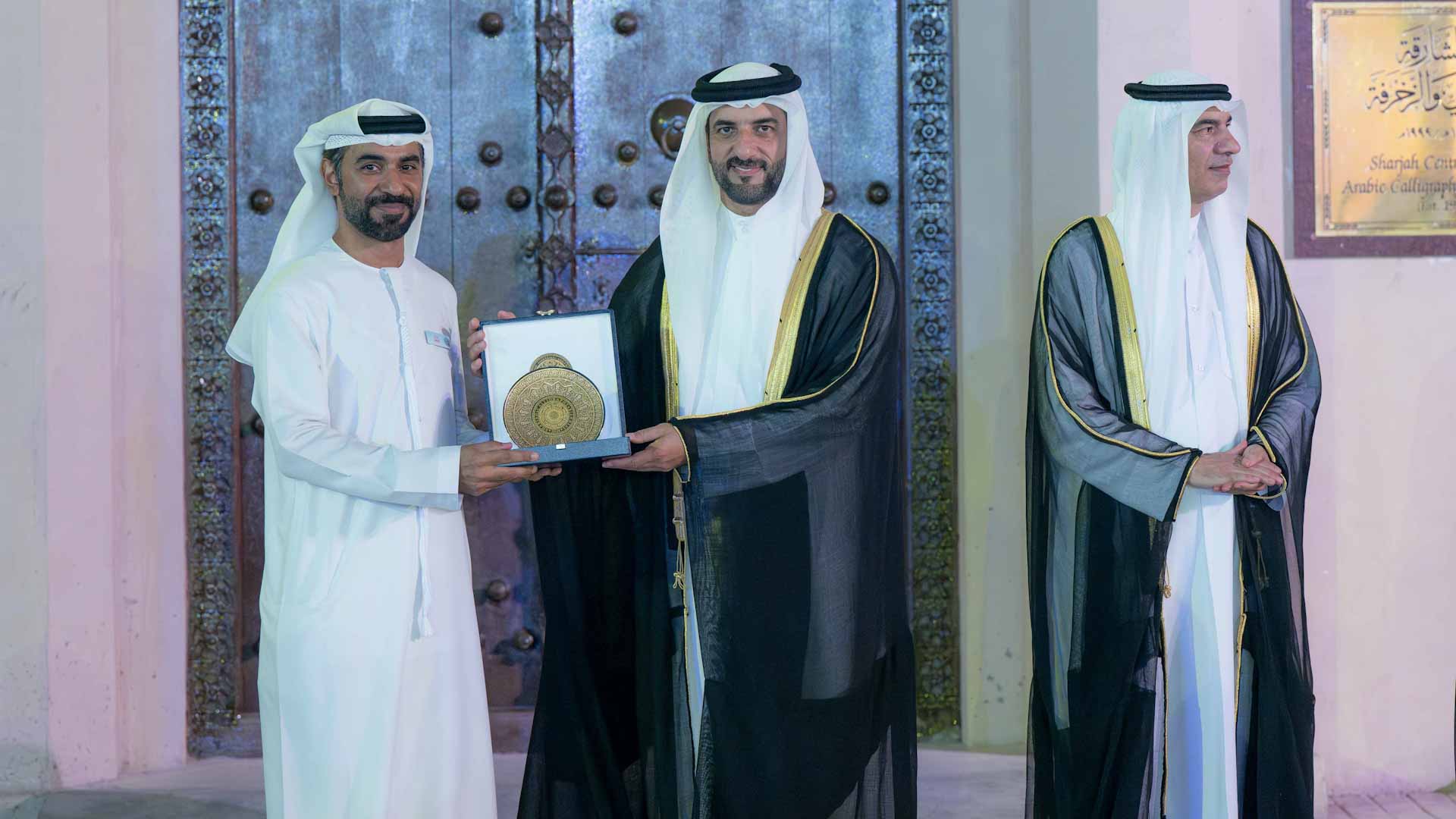 بعدها تفضل سمو نائب حاكم الشارقة بتكريم عدد من الفنانين من الشخصيات التي قدمت الكثير إلى فن الخط العربي، وهم: الخطاط خالد علي الجلاف، من الإمارات، والدكتور إدهام محمد حنش من العراق، والدكتور خوسيه ميغيل بويرتا من إسبانيا.