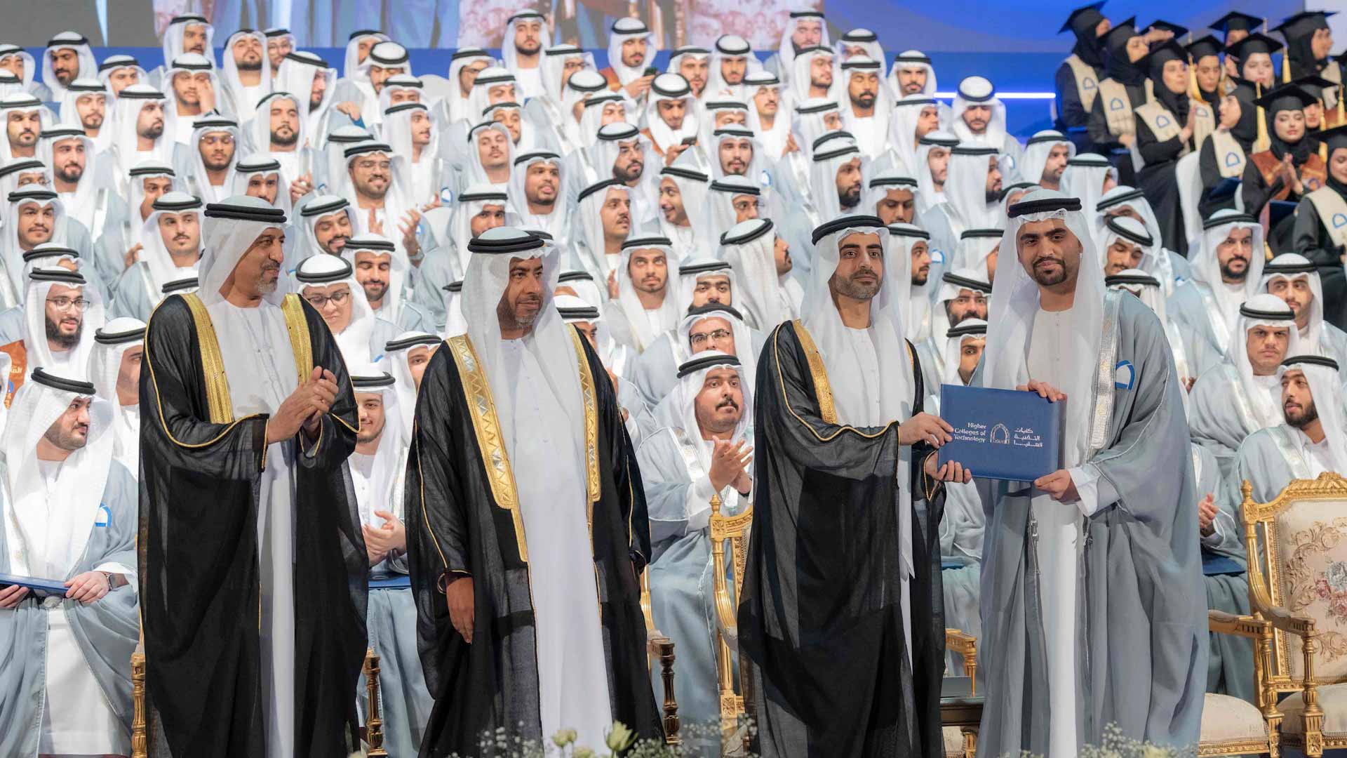 وألقت الخريجة حصة عمر آل علي كلمة بالنيابة عن الخريجين والخريجات، قالت فيها: "ها نحن ذا نقف اليوم على أعتاب مرحلة جديدة، لنمضي بخطوات ثابتة نحو المستقبل، مستلهمين من الكلمات الحكيمة لصاحب السمو رئيس الدولة التي أكد فيها أن الشباب ركيزة التنمية وقادة الغد، لنجعل من هذا اليوم بداية لقصة نجاح لا تنتهي، لأجل الوطن".