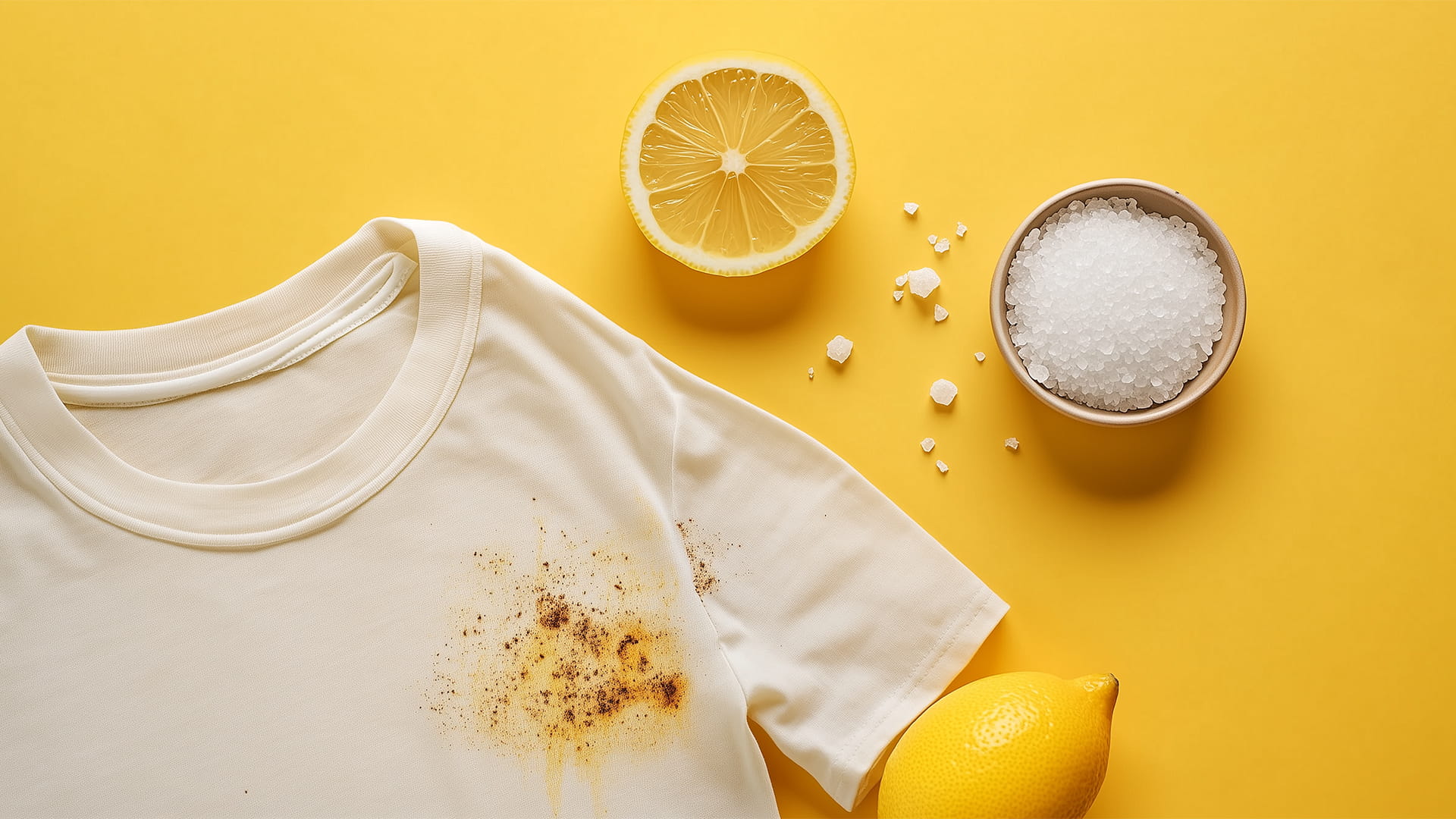 يُفكِّك عصير الليمون جُزَيئات الصَّدأ ويُذيبها، أمّا الملح فيُعَدّ مادّة كاشِطة تُزيل الصَّدأ عن الأسطح المختلفة، ويُساعد الجمع بين خصائص المادَّتَين على إزالة بُقَع الصدأ عن الملابس بفعاليَّة، مع التنويه إلى عدم استخدام الليمون على الملابس المُلوَّنة؛ لتأثيره السلبيّ في لونها، والحرص على عدم استخدام هذه الوصفة إلّا على الملابس البيضاء فقط.