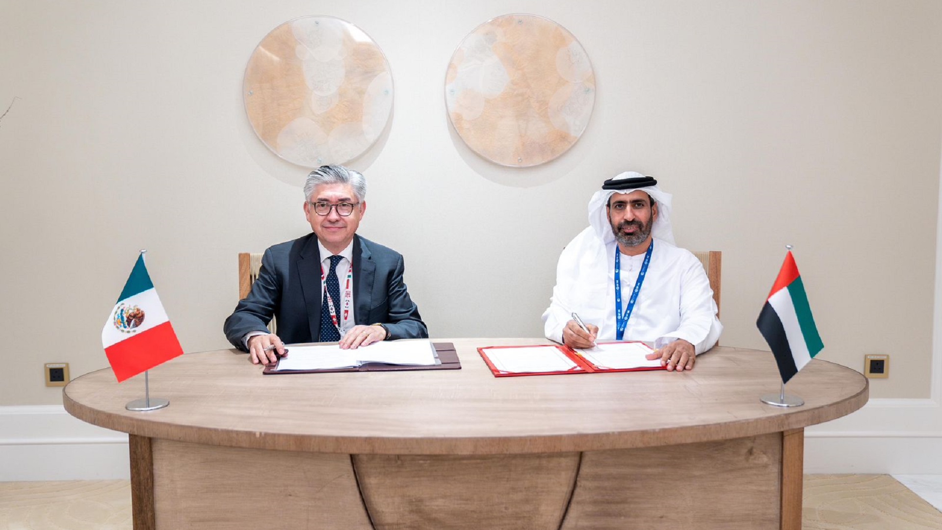 وحمل معاليه، تحيات صاحب السمو الشيخ محمد بن زايد آل نهيان رئيس الدولة "حفظه الله"، وصاحب السمو الشيخ محمد بن راشد آل مكتوم نائب رئيس الدولة رئيس مجلس الوزراء حاكم دبي "رعاه الله"، وسمو الشيخ منصور بن زايد آل نهيان نائب رئيس الدولة نائب رئيس مجلس الوزراء رئيس ديوان الرئاسة، إلى شاينباوم وتمنياتهم لها بدوام التوفيق والنجاح، وتحقيق كل ما يتطلع إليه شعب المكسيك الصديق من التقدم والرخاء.
