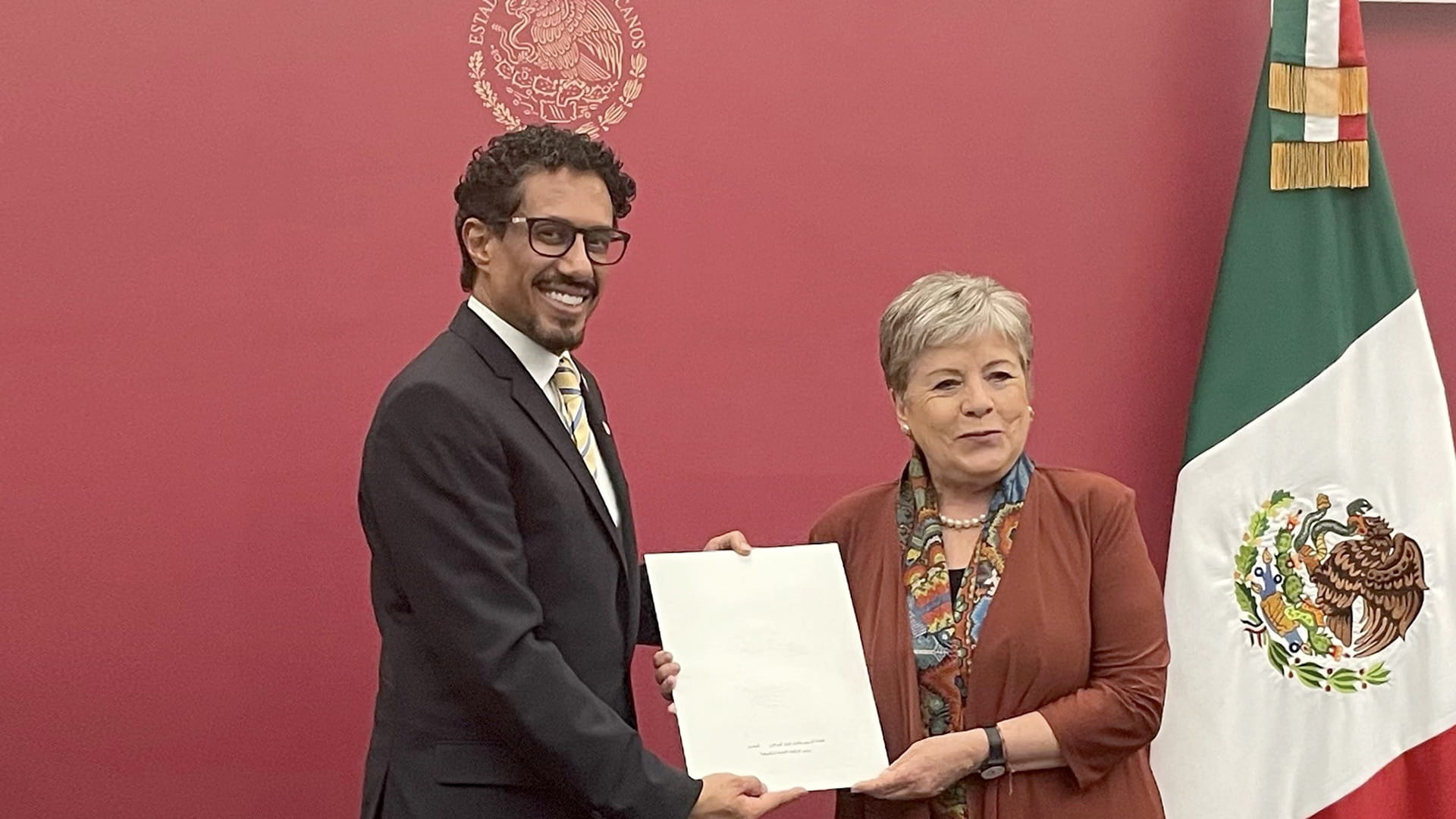 حضر معالي أحمد بن علي الصايغ وزير دولة، حفل تنصيب كلاوديا شاينباوم، رئيسة الولايات المتحدة المكسيكية، والذي أقيم بمقر القصر الوطني في العاصمة مكسيكو.