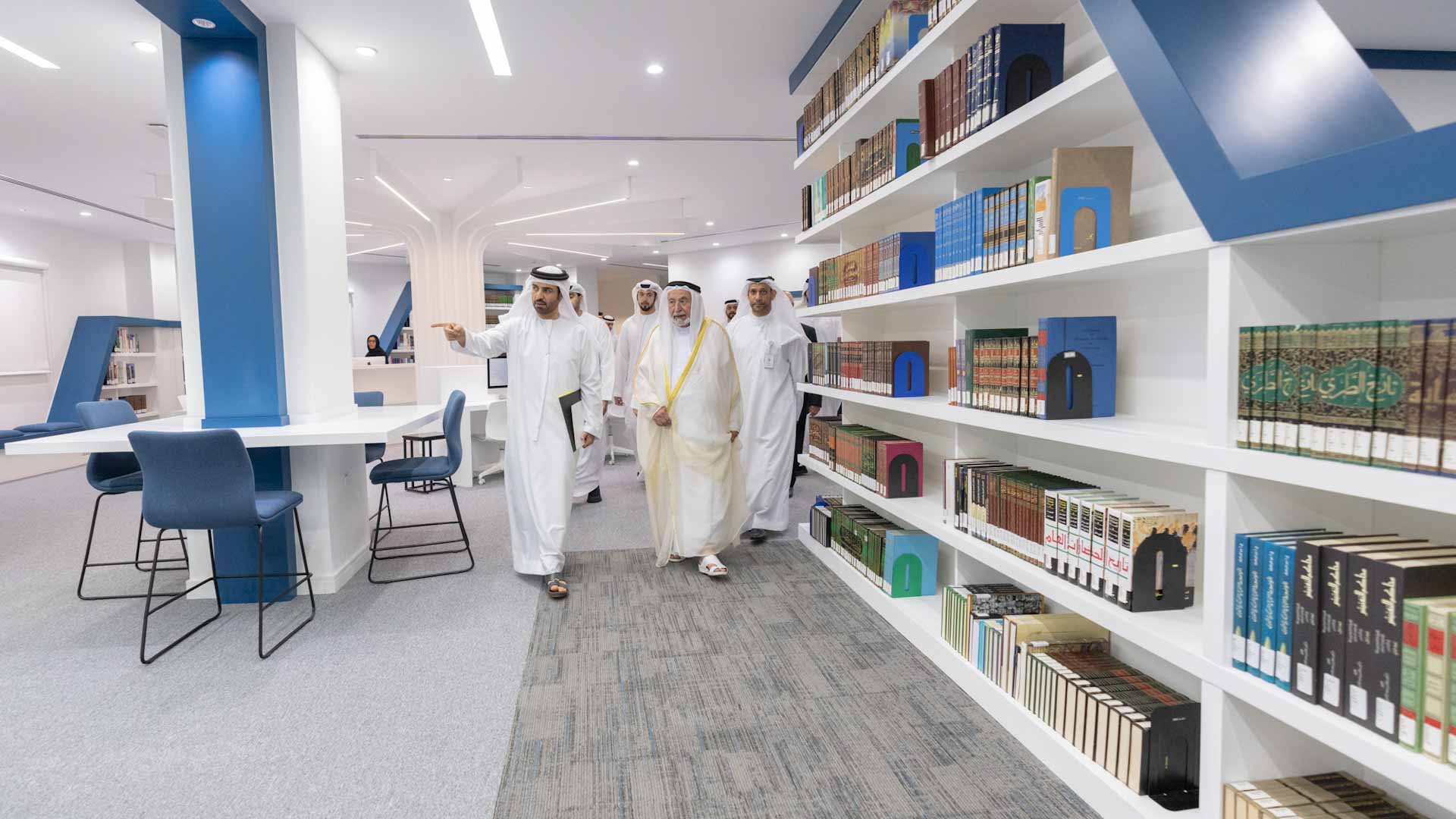 كما زار سموه مكتبة جامعة خورفكان، والتي أُعِيد تصميمها وتوسعتها لتواكب التطور في جامعة خورفكان، ولتوفر بيئة تعلمية متميزة تحوي كافة الخدمات والمرافق، وتضم عدداً من العناصر الهندسية التي تستثمر المساحات الفارغة، وتعطي انسيابية في التجول بين جنبات المكتبة وتعزيز دورها كرافد علمي للطلبة.