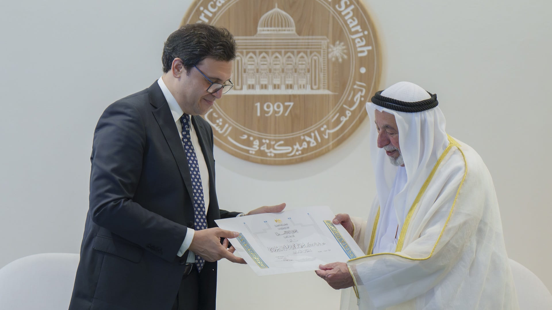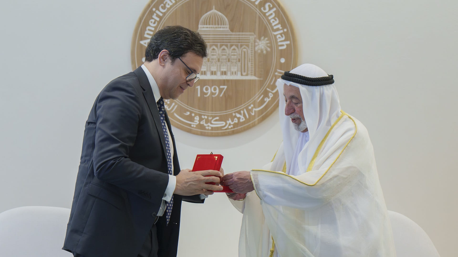 تسلم صاحب السمو الشيخ الدكتور سلطان بن محمد القاسمي، عضو المجلس الأعلى حاكم الشارقة، صباح الخميس، وبحضور الشيخة بدور بنت سلطان القاسمي رئيسة الجامعة الأميركية في الشارقة، جائزة النيل للمبدعين العرب للعام 2024 من معالي أحمد فؤاد هنو، وزير الثقافة في جمهورية مصر العربية، وتعتبر الجائزة التي يمنحها المجلس الأعلى للثقافة أرفع وأعلى الجوائز في المجال الثقافي، للشخصيات العربية البارزة في كل من مجالات الآداب والفنون والعلوم الاجتماعية.