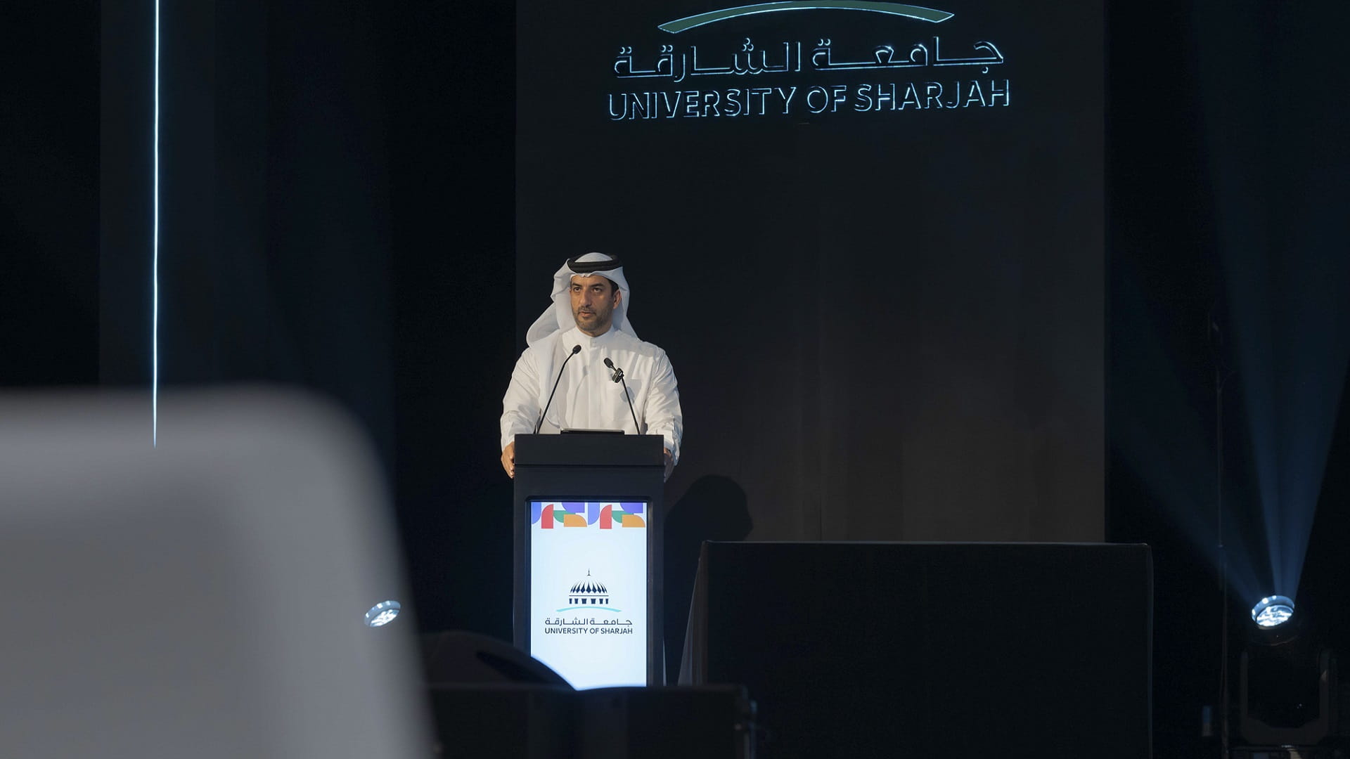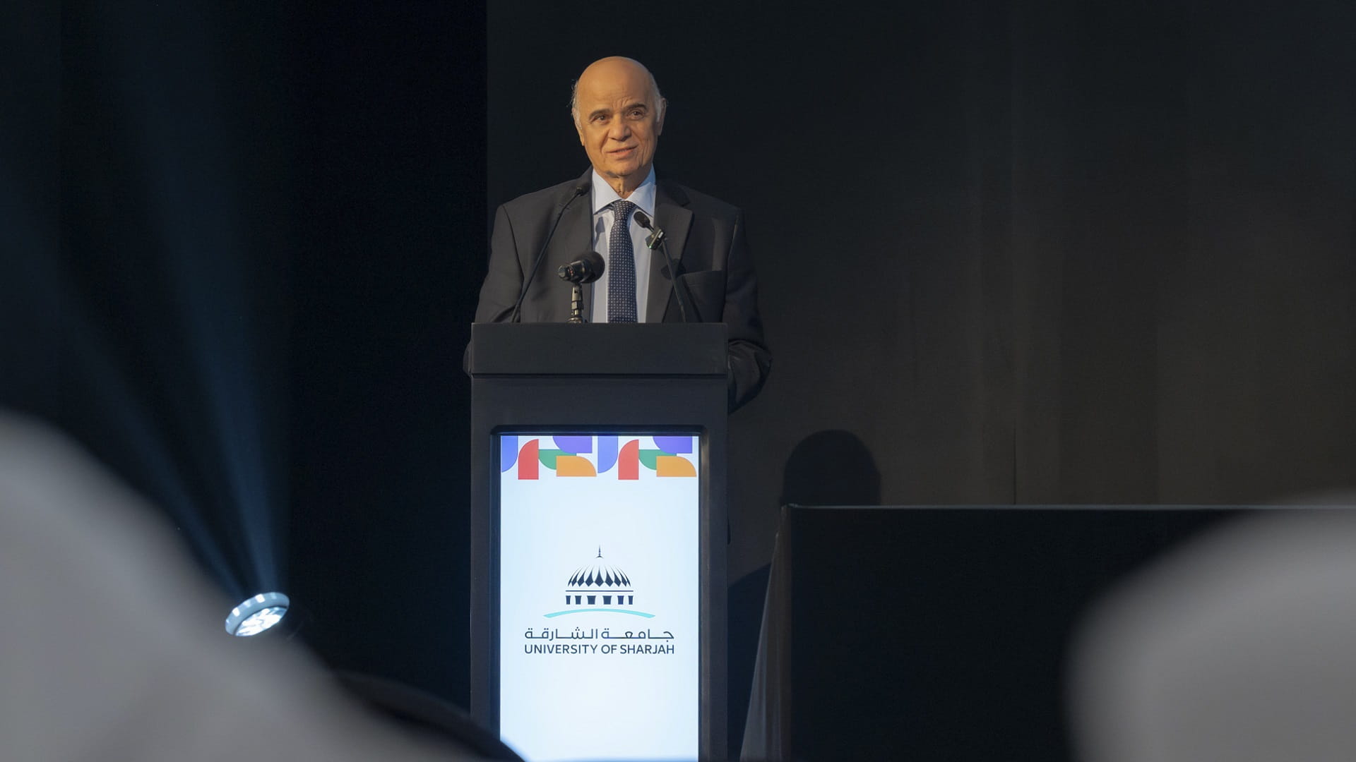 وتناول الدكتور حميد النعيمي الأولويات التي ترتكز عليها الخطة الاستراتيجية لجامعة الشارقة والتي تتمثل في أولوية التوطين من خلال برنامج علماء الوطن 2050 ، والذي يهدف إلى توطين 25% من أعضاء هيئة التدريس والعلماء والباحثين والقادة الأكاديميين بحلول عام 2030، وأولوية الرقمنة التي تهدف إلى تحسين الأداء المؤسسي ورقمنة 85٪ من العمليات، وأولوية المشاركة العالمية التي تهدف إلى الوصول بالجامعة لأفضل 200 جامعة في العالم في التصنيف العالمي، وأولوية ريادة الأعمال، التي تهدف إلى إنشاء شركات ناشئة، والبحث العلمي الهادف لخدمة المجتمع.
