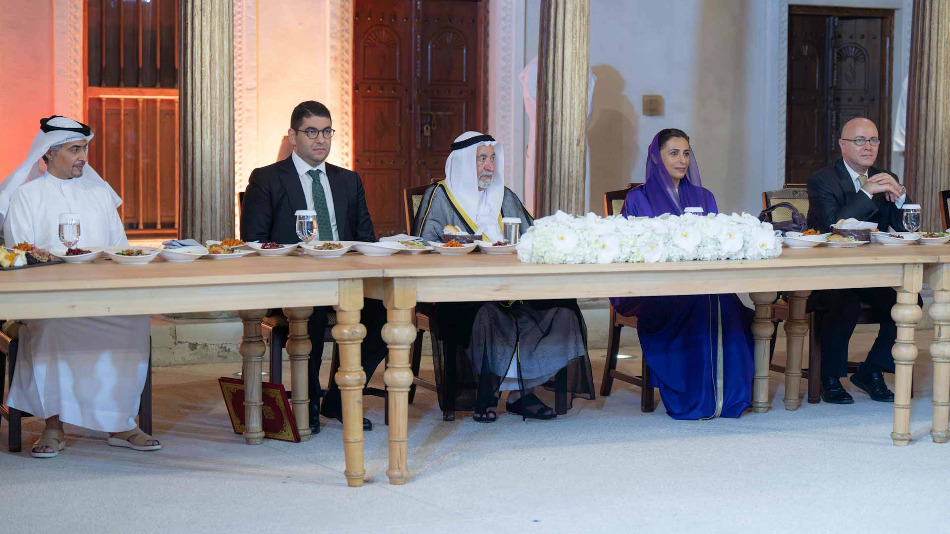 شهد صاحب السمو الشيخ الدكتور سلطان بن محمد القاسمي عضو المجلس الأعلى حاكم الشارقة، مساء اليوم الأحد، حفل العشاء المقام بمناسبة الاحتفاء بالمملكة المغربية ضيف شرف معرض الشارقة الدولي للكتاب، وذلك في بيت النابودة بمنطقة قلب الشارقة.