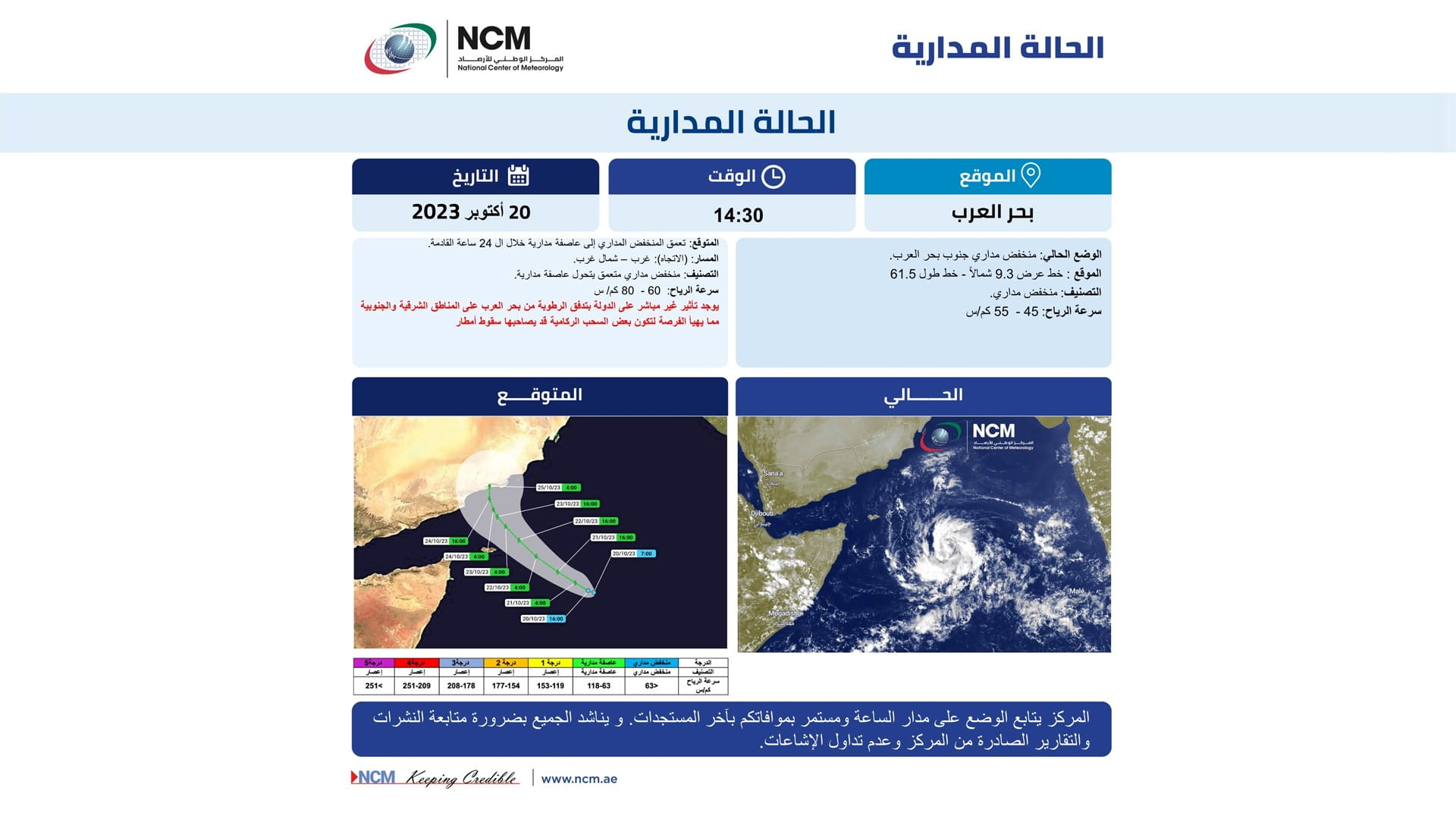 وذكر المركز، في نشرته اليومية بشأن حالة الطقس، أن الرياح ستكون جنوبية غربية إلى شمالية غربية من 10 إلى 25 تصل إلى 40 كم/س.