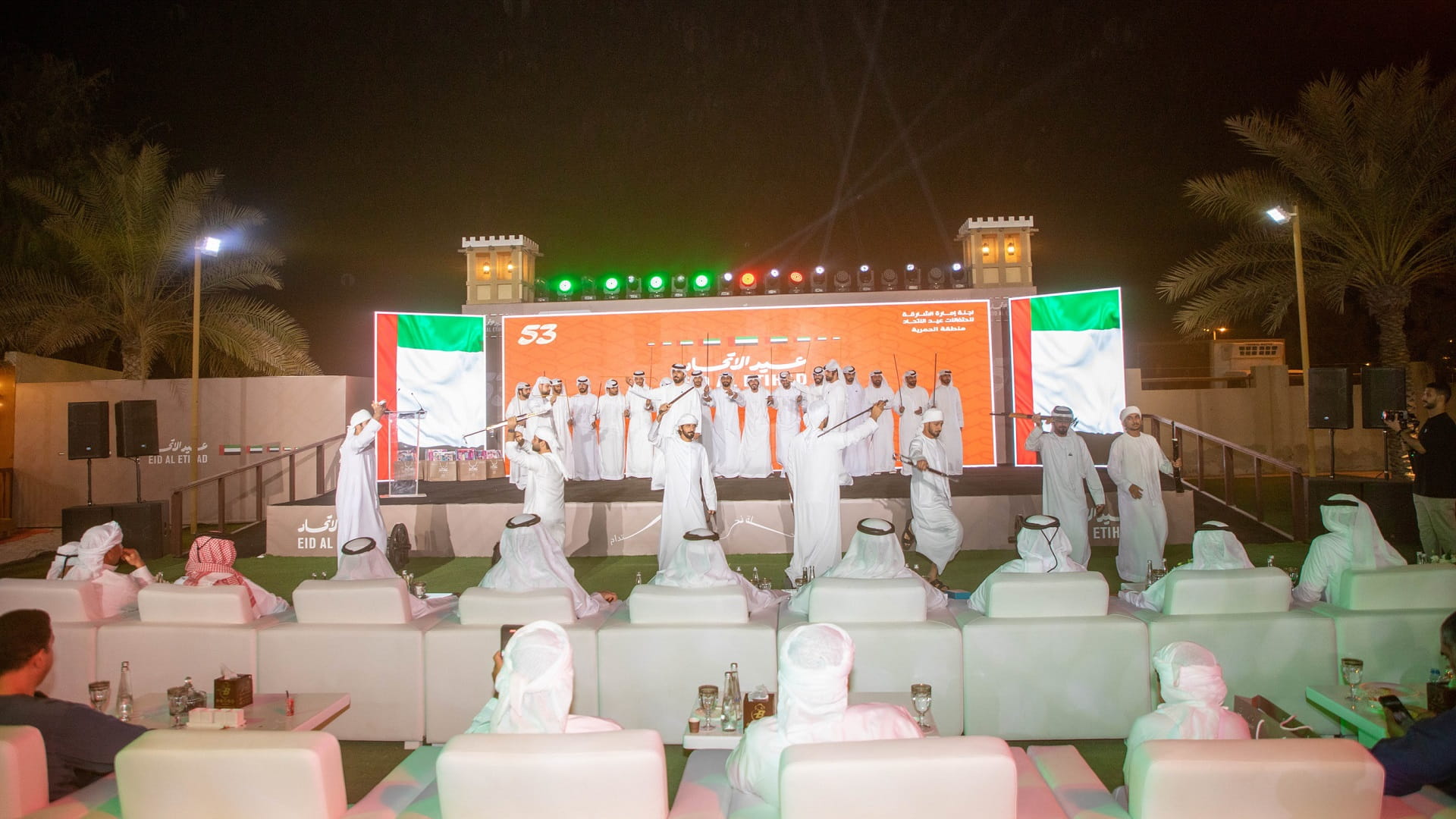 تتألق بلدية الحمرية في الاحتفال باليوم الوطني الـ 53، حيث أبرزت الرقم 53 مضاءً بألوان علم دولة الإمارات العربية المتحدة، لتزيين كافة ميادين وشوارع المنطقة بتشكيلات ضوئية ملونة وزاهية، تعكس أجواء الفرح والاعتزاز بهذه المناسبة الوطنية الغالية.