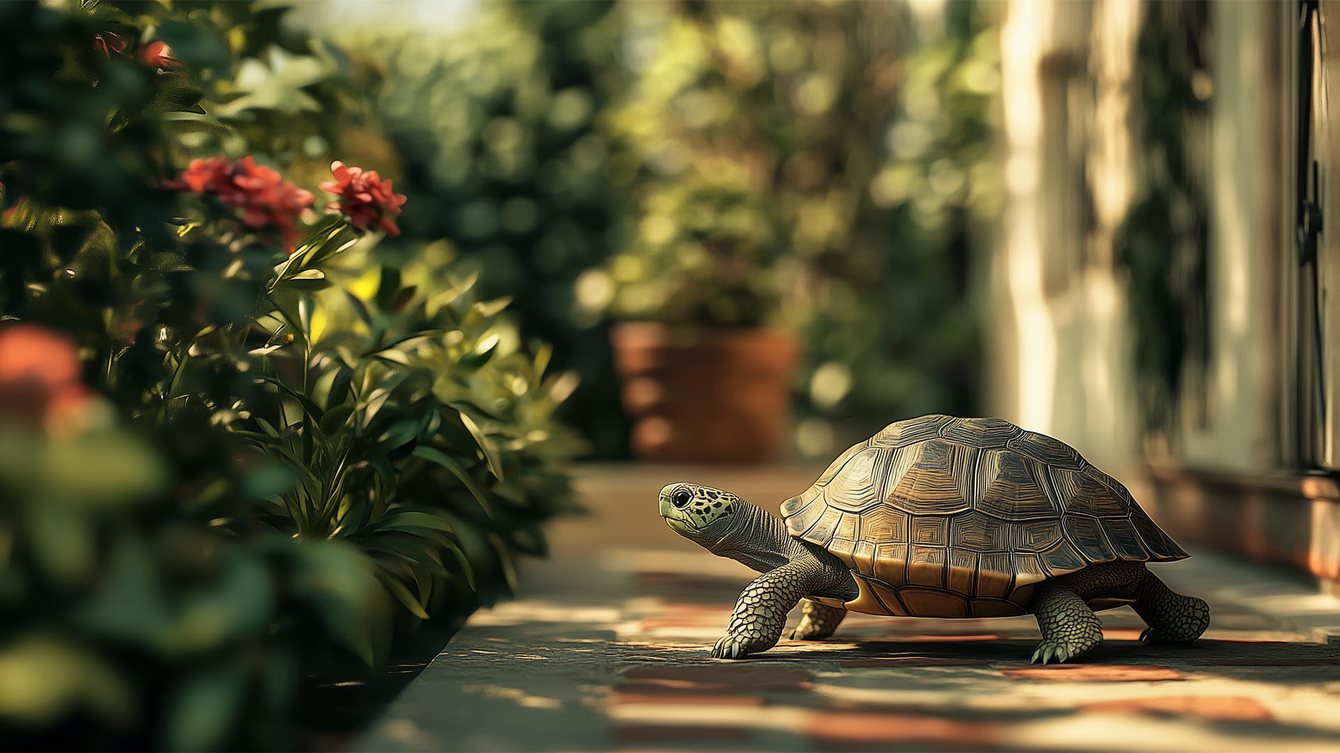 بصورة عامَّة، تُفضَّل تربية السلاحف البَرِّية في الحديقة الخارجية، مع تأمين المكان الذي تُوجَد فيه بسِياج والتحقُّق من عدم قدرتها على الحفر أسفله، بالإضافة إلى توفير بعض الأغصان والحجارة فيه؛ لغايات الاختباء، والحماية، مع الحرص على احتوائه على زوايا مَحميَّة من أشعَّة الشمس، وأخرى مكشوفة.