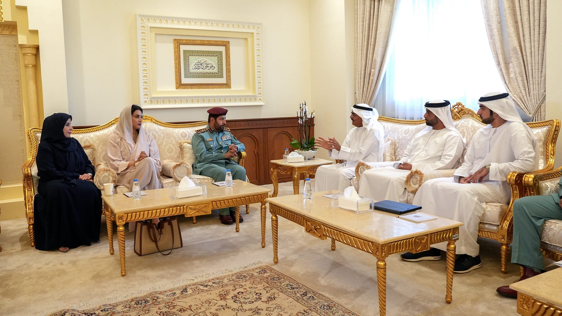 يحضر وقائع الجلسة سعادة اللواء عبد الله بن عامر، القائد العام لشرطة الشارقة، والمستشار الدكتور عيسى بن حنظل مدير الدائرة القانونية لحكومة الشارقة، ومعاونيهما.