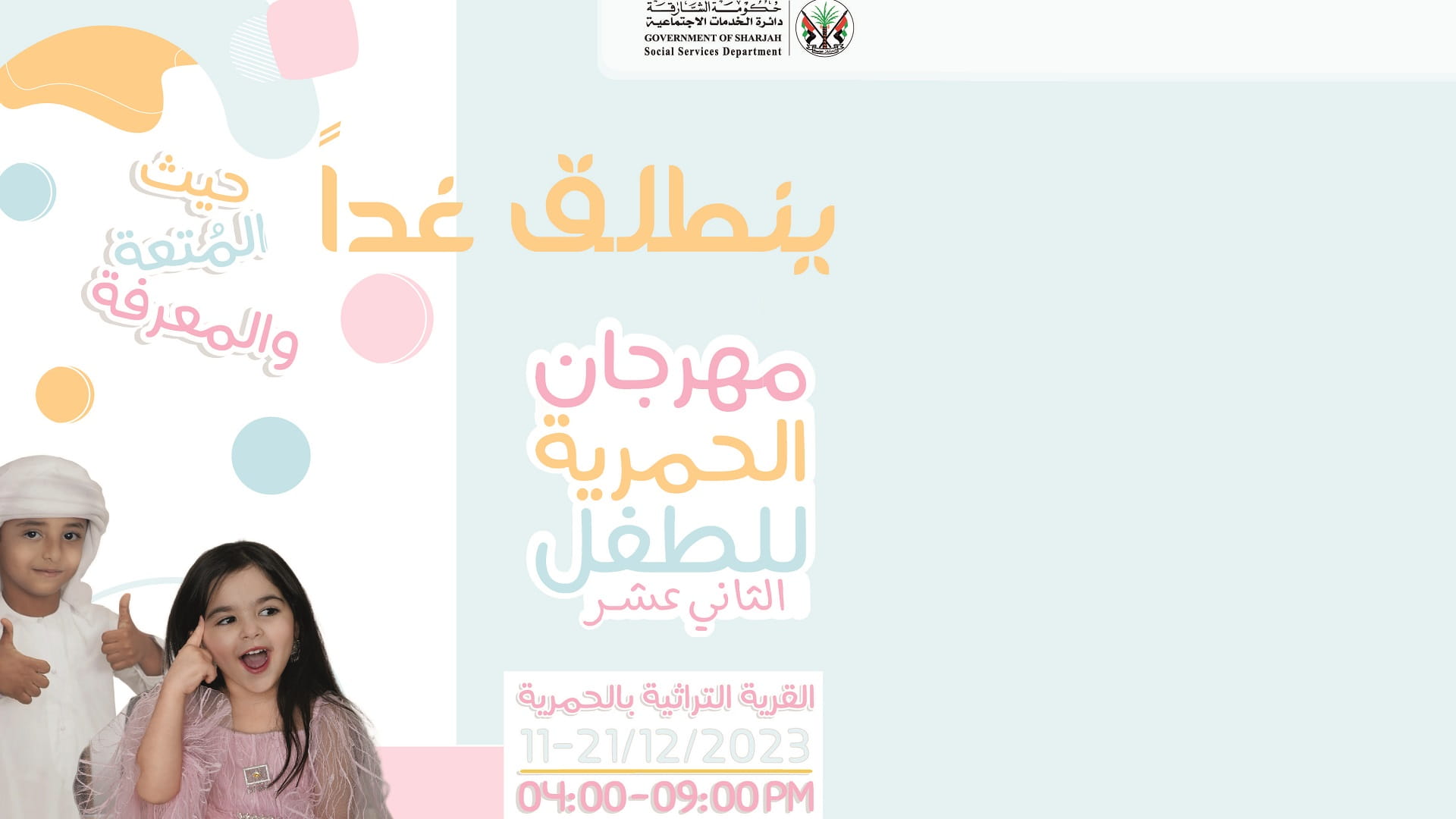 تتجهز مدينة الحمرية لاحتفالها السنوي والذي دأبت على تنظيمه دائرة الخدمات الاجتماعية في الشارقة، والذي يعرف بمهرجان الحمرية للطفل في نسخته الـ 13، والذي ينطلق من 16-26 من شهر ديسمبر الجاري وتستضيفه قرية التراث في الحمرية.