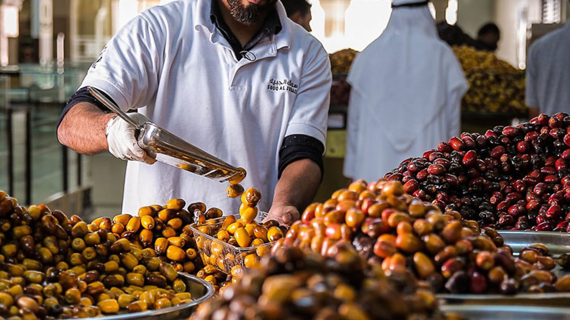 ويظهر من عادات أهل الإمارة حُسن الضيافة والكرم الإماراتي في سوق التمور؛ إذ يُشجِّع التجّارُ زُوّارَ السوق أثناء تجوُّلهم على تذوُّق مُنتَجاتهم؛ ممّا يمنحهم الفرصة لتجربة التمر قبل شرائه، وهذا ما يعكس أيضاً الثقة العالية لدى التجّار بجودة مُنتَجاتهم.