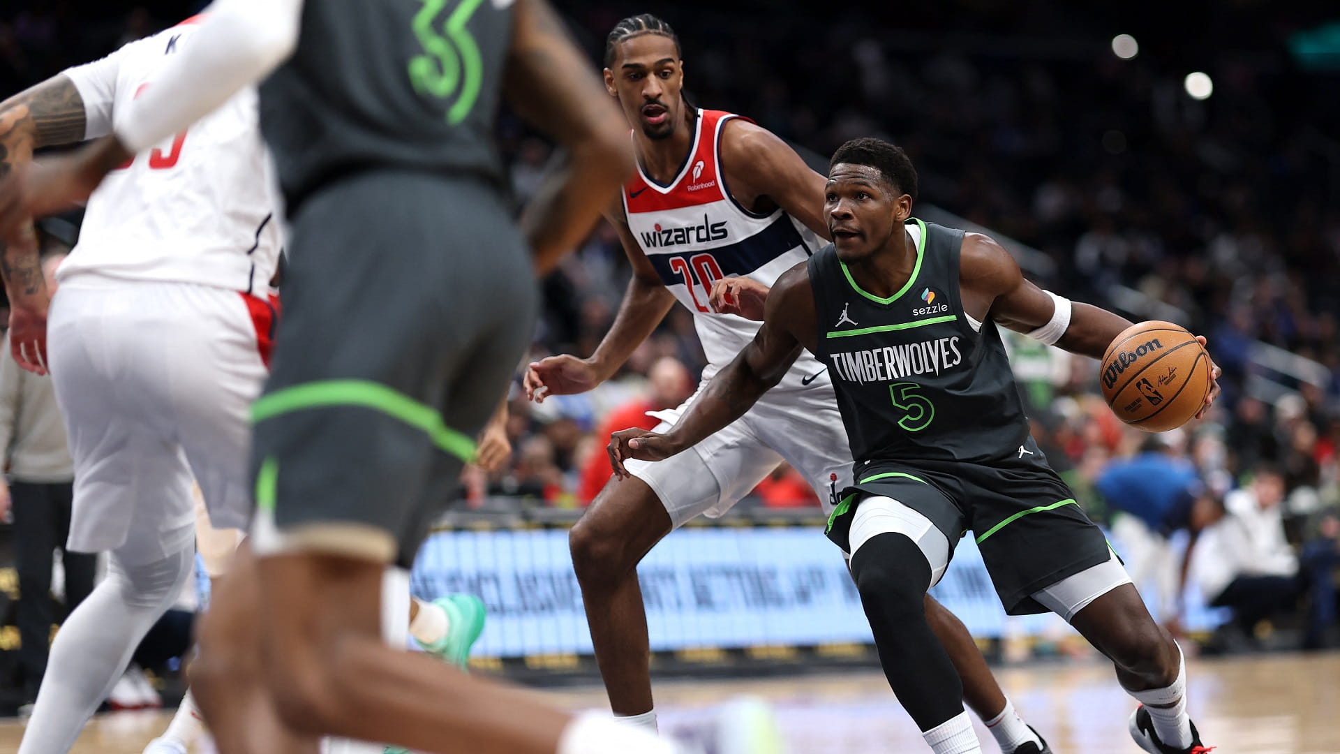 قاد أنتوني إدواردز فريقه مينيسوتا تيمبرولفز للفوز على مضيفه واشنطن ويزاردز بنتيجة 120 / 106، في بطولة الدوري الأميركي للمحترفين لكرة السلة للرجال (إن بي أيه).
