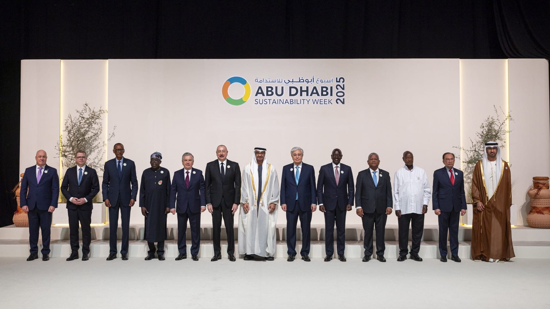 ورحب صاحب السمو رئيس الدولة بضيوف الإمارات من القادة والمسؤولين والخبراء.. مشيراً سموه إلى أن "أسبوع أبوظبي للاستدامة".. يمثل منصة عالمية لطرح الرؤى وتبادل الخبرات من أجل مستقبل أفضل للبشرية ويجسد التزام دولة الإمارات الثابت بدعم كل ما يعزز العمل الجماعي الدولي لتحقيق التنمية المستدامة والازدهار للجميع.. إضافة إلى نهج الدولة في تبني التكنولوجيا المتقدمة وتوظيفها لتحقيق نقلة نوعية في نظم الطاقة ودفع عجلة التقدم الاقتصادي بما يضمن تحقيق الاستقرار والرفاهية للمجتمعات.