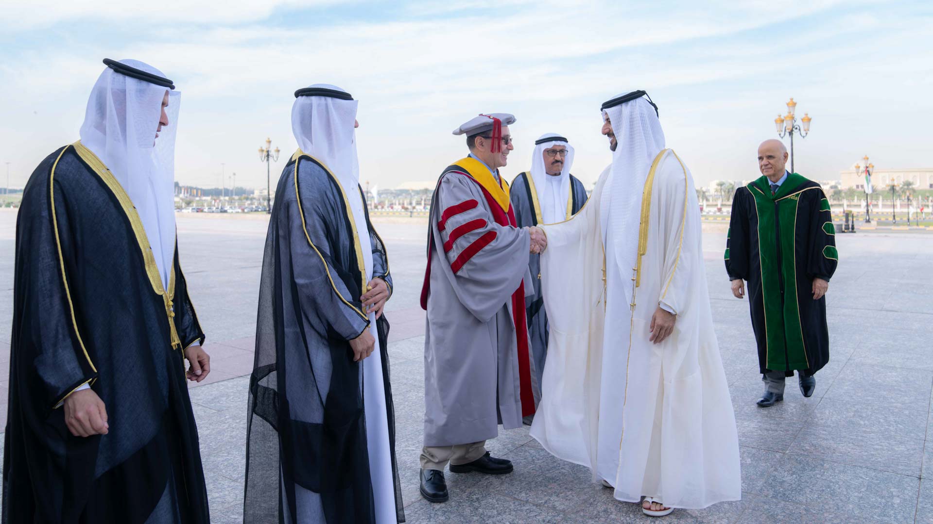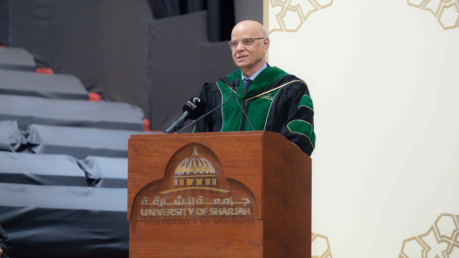 واختتم مدير جامعة الشارقة كلمته موصياً خريجي وخريجات الدراسات العليا بأن يكونوا خير سفراء للجامعة، مسخرين ما نهلوه من علمٍ ومعرفةٍ ومهاراتٍ لخدمة المجتمع، ومتميزين بالإبداع والابتكار في تخصصاتهم، ومتبعين المنهج العلمي السليم في كل خطوةٍ يخطونها.