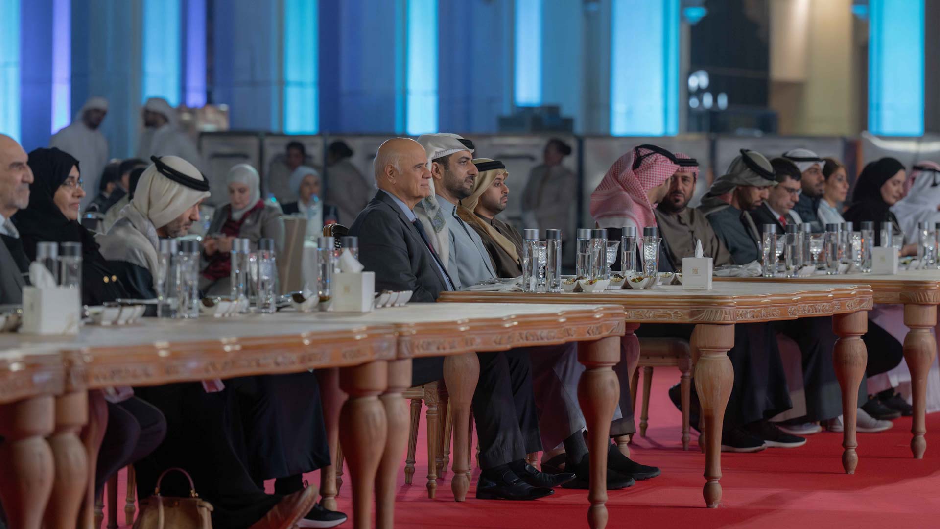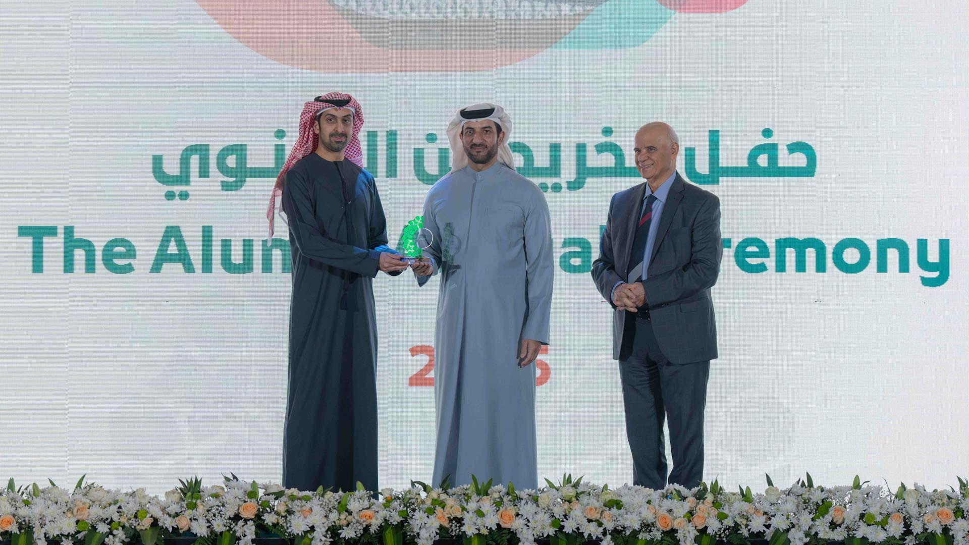حضر الحفل بجانب سمو رئيس جامعة الشارقة كل من: الشيخ محمد بن حميد القاسمي رئيس دائرة الإحصاء والتنمية المجتمعية، وسعادة الدكتور منصور محمد بن نصار رئيس الدائرة القانونية لحكومة الشارقة، وسعادة حمد علي المحمود رئيس دائرة التنمية الاقتصادية، وحميد مجول النعيمي مدير جامعة الشارقة، وعدد من أعضاء مجلس أمناء جامعة الشارقة، والهيئة الإدارية والتدريسية والخريجين وممثلي الشركات الراعية.