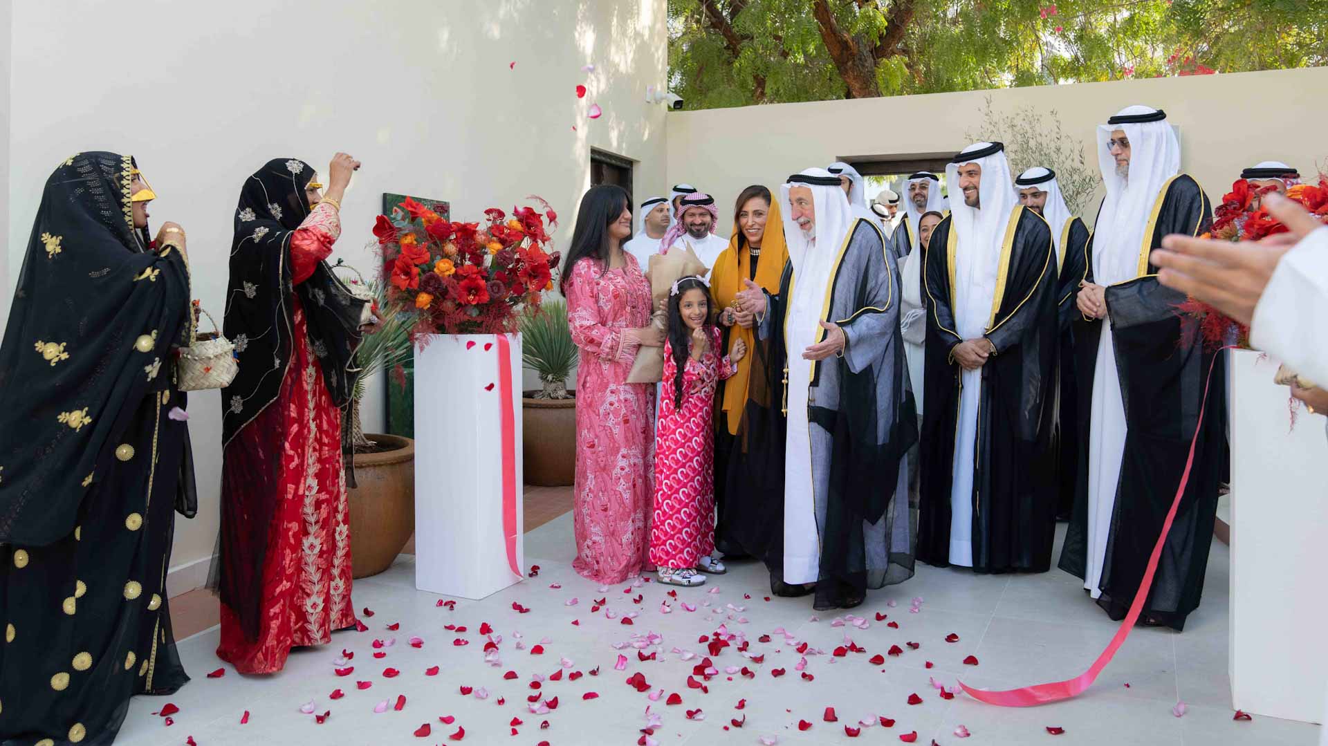 وكان في استقبال سموه لدى وصوله إلى بيت اللّوال سمو الشيخ سلطان بن محمد بن سلطان القاسمي، ولي العهد نائب حاكم الشارقة، وسمو الشيخ سلطان بن أحمد بن سلطان القاسمي، نائب حاكم الشارقة، والشيخة بدور بنت سلطان القاسمي، مؤسسة بيت اللّوال، والشيخة حور بنت سلطان القاسمي، رئيسة مؤسسة الشارقة للفنون، والشيخ سالم بن عبد الرحمن القاسمي، رئيس مكتب سمو الحاكم، والشيخ فاهم بن سلطان القاسمي، رئيس دائرة العلاقات الحكومية، والشيخ ماجد بن سلطان القاسمي، رئيس دائرة شؤون الضواحي، والشيخة نوار بنت أحمد القاسمي، مدير مؤسسة الشارقة للفنون، وعدد من الشيوخ وكبار المسؤولين.