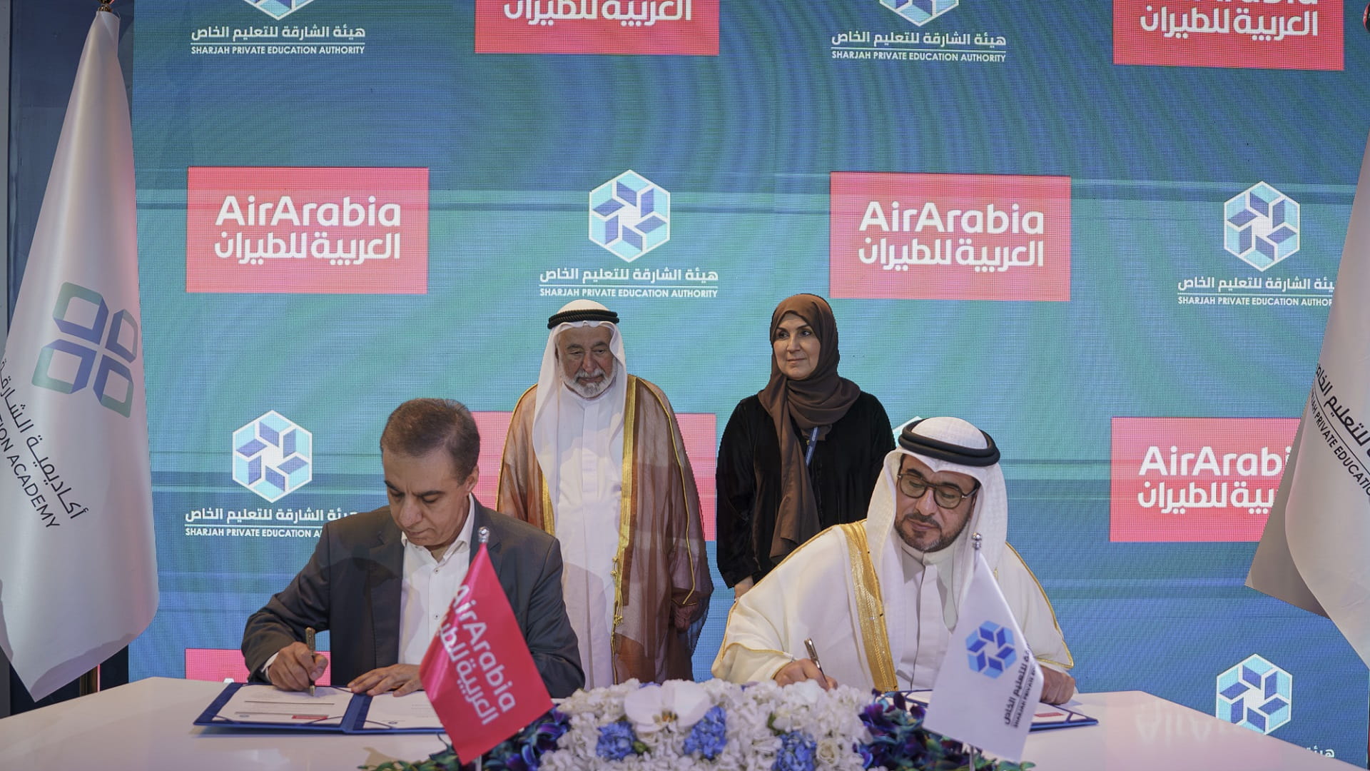 كما شهد صاحب السمو حاكم الشارقة توقيع اتفاقية بين هيئة الشارقة للتعليم الخاص والعربية للطيران، وقعها كل من: علي الحوسني، مدير عام الهيئة، وعادل عبد الله علي، الرئيس التنفيذي لمجموعة العربية للطيران، وتتضمن الاتفاقية التي تأتي ضمن المبادرة الرائدة "قُم للمعلم"، دعم المعلمين والتربويين والعاملين في الأكاديمية بالعديد من المزايا الحصرية والتخفيضات والخصومات على تذاكر السفر وذلك تسهيلاً لهم.