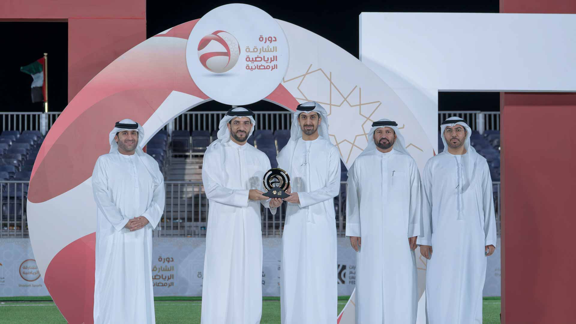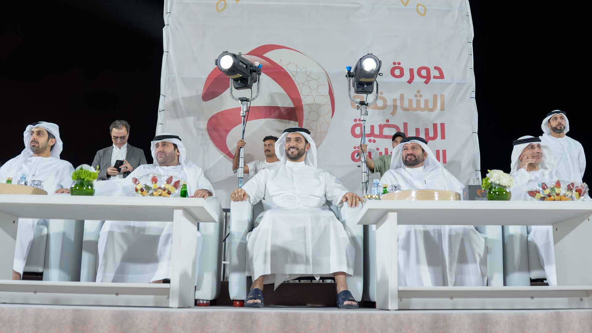 وحضر التتويج بجانب سمو رئيس مجلس الشارقة للإعلام كل من: الشيخ ماجد بن سلطان القاسمي رئيس دائرة شؤون الضواحي، وحمد علي المحمود رئيس دائرة التنمية الاقتصادية، ومحمد حسن خلف مدير عام هيئة الشارقة للإذاعة والتلفزيون، وحسن يعقوب المنصوري أمين عام مجلس الشارقة للإعلام، وعدداً من كبار المسؤولين ومديري القنوات والإذاعات في هيئة الشارقة للإذاعة والتلفزيون، وجمع كبير من محبي كرة القدم.