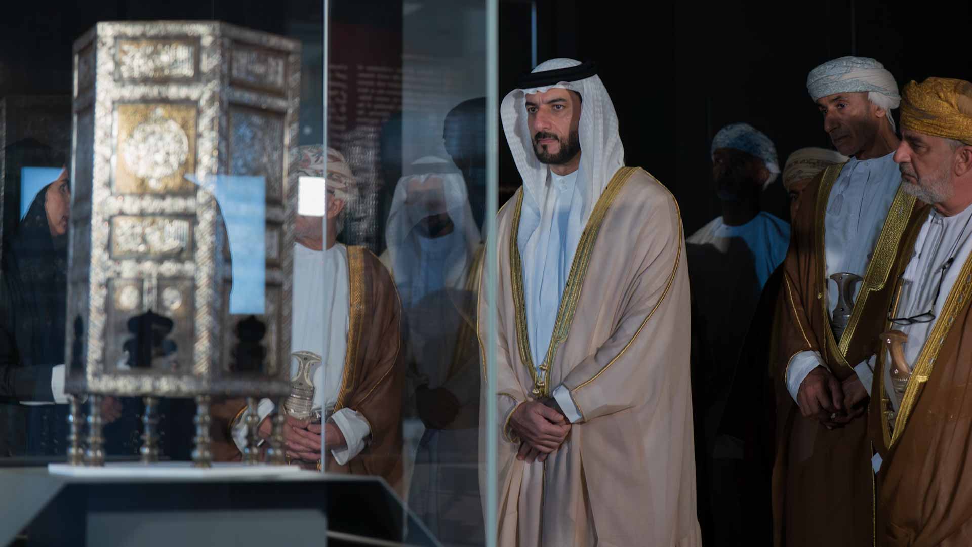 وتفضل سمو نائب حاكم الشارقة بقص شريط افتتاح المعرض ليتجول بعدها بين منصاته مستمعاً لشرح مفصل حول المقتنيات وأبرز المشاهد والدلالات التاريخية والثقافية والفنية التي تقدمها للزائر، ويضم 82 قطعة فنية نادرة، تعرض للمرة الأولى خارج دولة الإمارات العربية المتحدة، وتشمل المعروضات المخطوطات الإسلامية، والمقتنيات المعدنية، والخزفيات، والمسكوكات التاريخية التي تعكس تطور وثراء الإرث الفني الذي تميزت به الحضارات الإسلامية المتعاقبة.