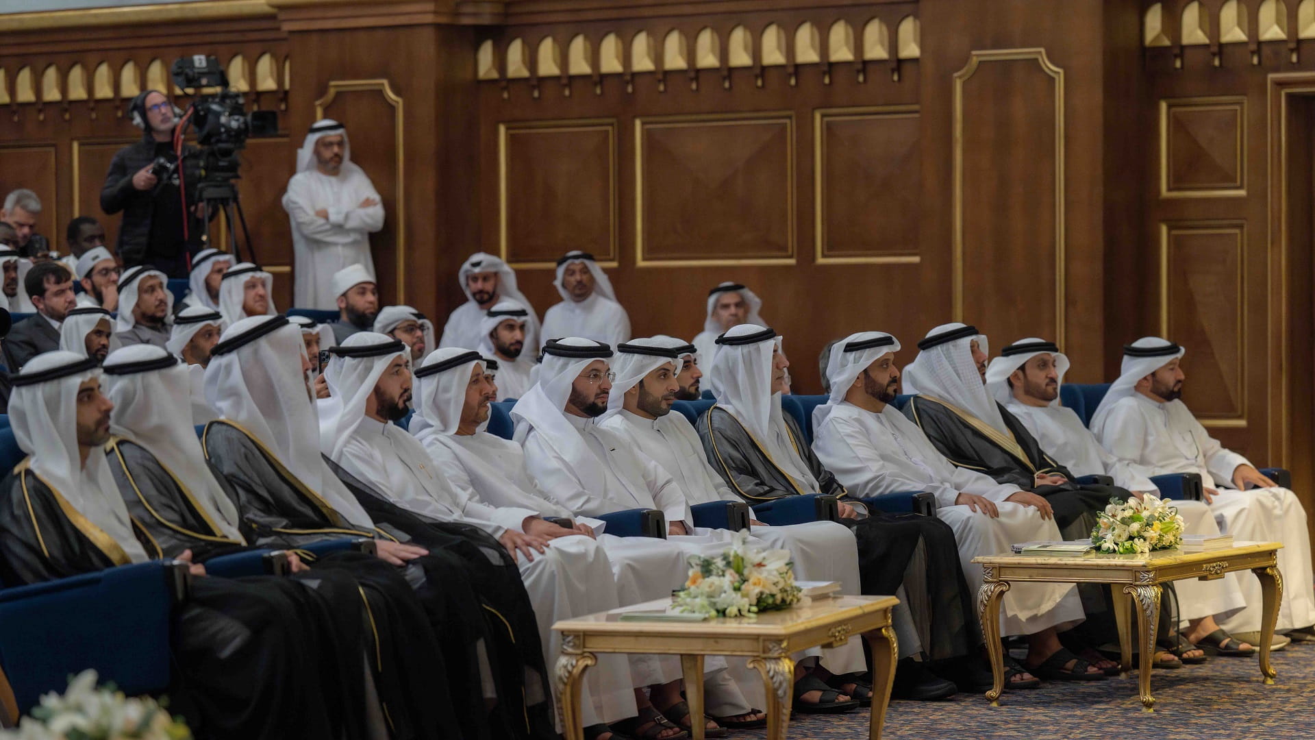 وتفضل صاحب السمو حاكم الشارقة بتكريم الرعاة والداعمين لمجمع القرآن الكريم في الشارقة، مقدماً سموه لهم الشهادات التقديرية والدروع، ملتقطاً سموه صورة تذكارية مع العلماء والمستكتبين في الموسوعتين.