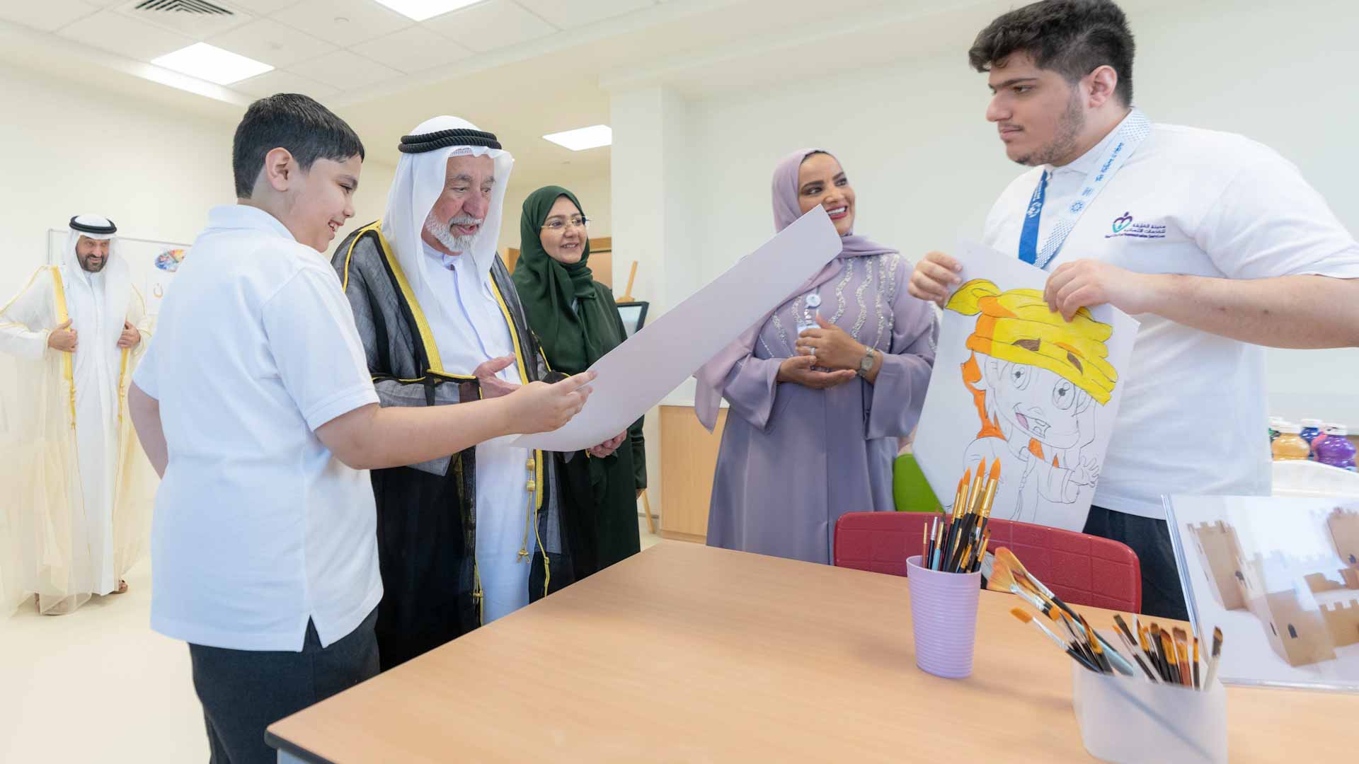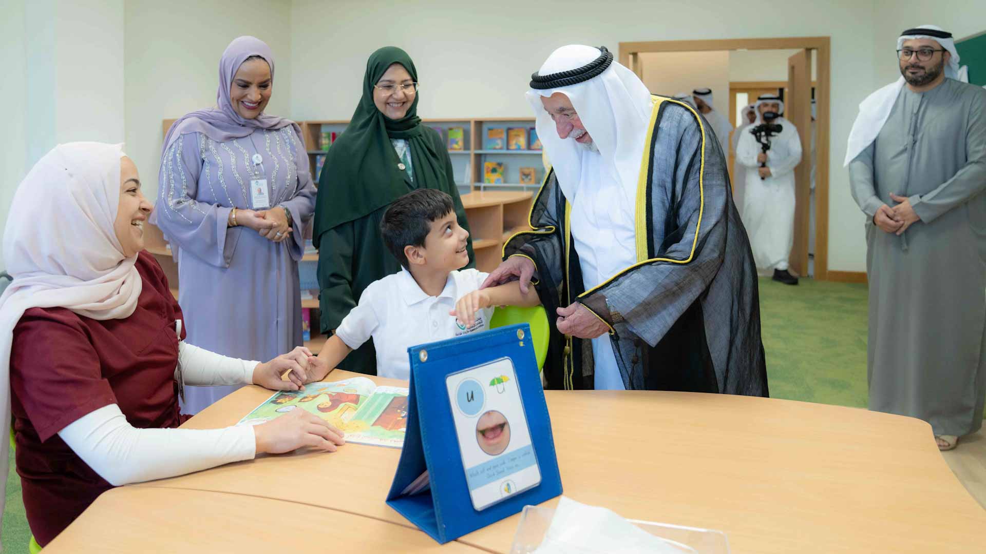 وانتقل سموه إلى مدرسة الوفاء لتنمية القدرات التي تبلغ طاقتها الاستيعابية 352 طالباً وطالبة من الأشخاص ذوي الإعاقة الذهنية، وتقدم لهم الخدمة والبرامج المتخصصة وفق أفضل وأحدث الممارسات، متجولاً سموه في المبنى مشاهداً الفصول الدراسية وغرف العلاج الطبيعي والعلاج الوظيفي والإعاقات الشديدة التي توفر بيئة تعليمية جاذبة تتماشى مع مبادئ التعلم، مما يسهم في خلق بيئة دامجة وميسرة وفق أعلى المعايير العالمية.
