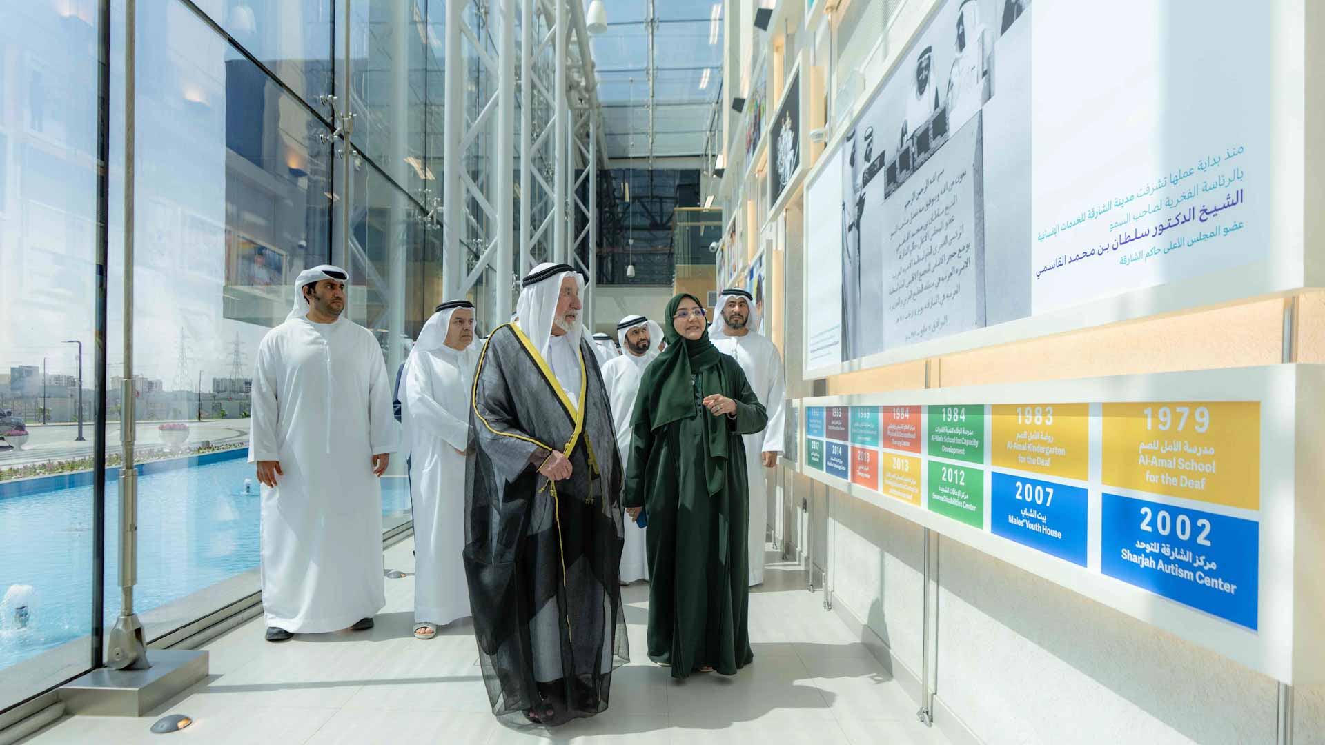 وكان صاحب السمو حاكم الشارقة قد أزاح الستار عن اللوحة التذكارية إيذاناً بافتتاح المباني الجديدة لمدينة الشارقة للخدمات الإنسانية، والتي تضم في مرحلتها الأولى مركز الشارقة للتوحد ومدرسة الوفاء لتنمية القدرات، والمبنى الإداري، ويستفيد منها 3000 شخص بواقع 1287 متلقي الخدمة اليومية، و1159 مستفيد من المركز العلاجي، وتعتمد المباني الجديدة على مبادرات ابتكارية ترتكز على منهجية البحث العلمي وتتماشى مع أحدث الممارسات العالمية، وتتميز بكونها صديقة للبيئة وموائمة لأحدث التقنيات، وتحقق معايير التصميم الشامل لتوفير بيئة دامجة وميسرة.