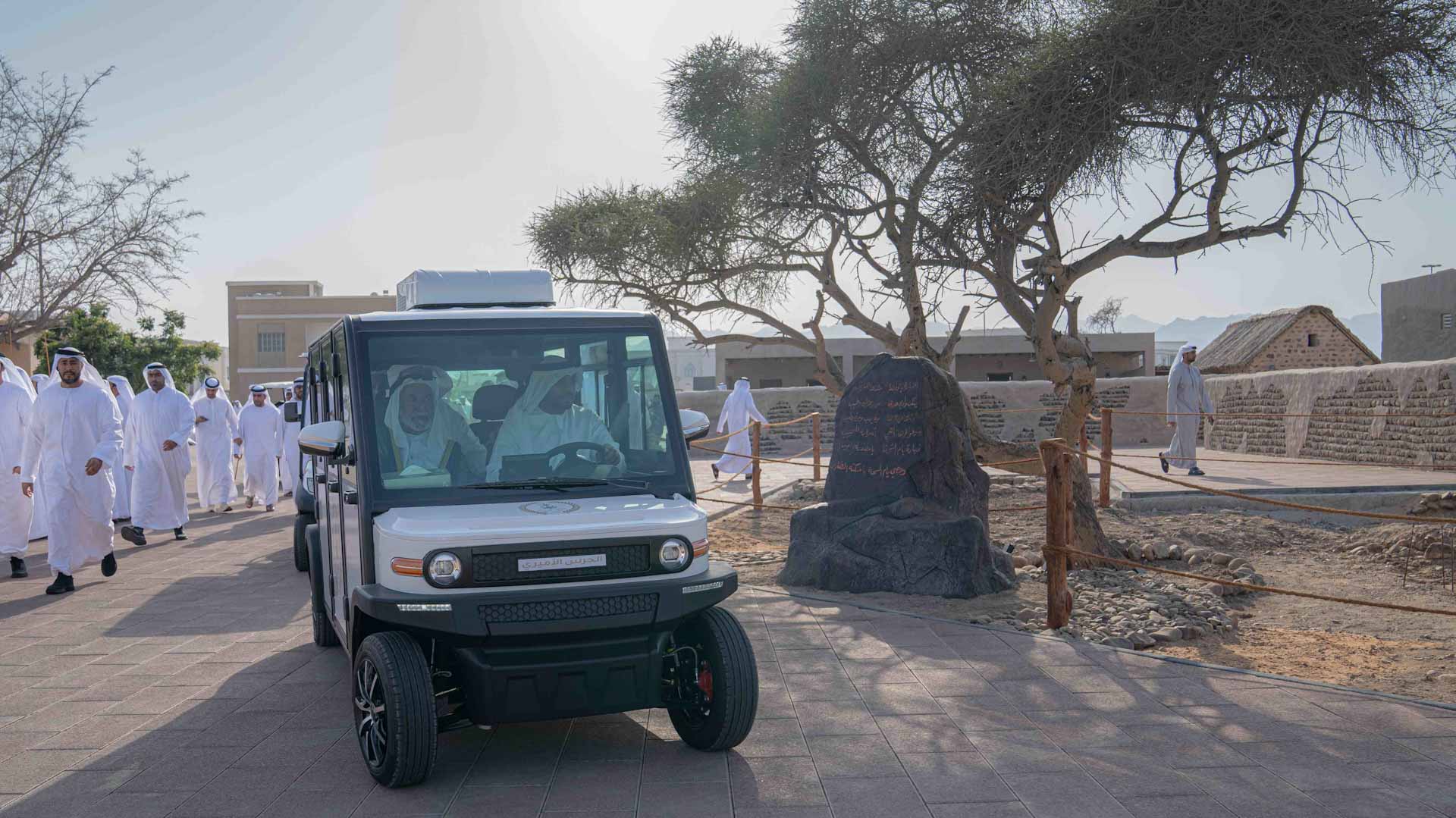 رافق سموه خلال الافتتاح كل من: سعادة المهندس يوسف خميس العثمني رئيس هيئة الطرق والمواصلات، وسعادة عبد الله إبراهيم الزعابي رئيس دائرة الموارد البشرية، وسعادة الدكتور عبد العزيز المسلم رئيس معهد الشارقة للتراث، وسعادة محمد عبيد الزعابي رئيس دائرة التشريفات والضيافة، وعدداً من المسؤولين وأعيان المنطقة.