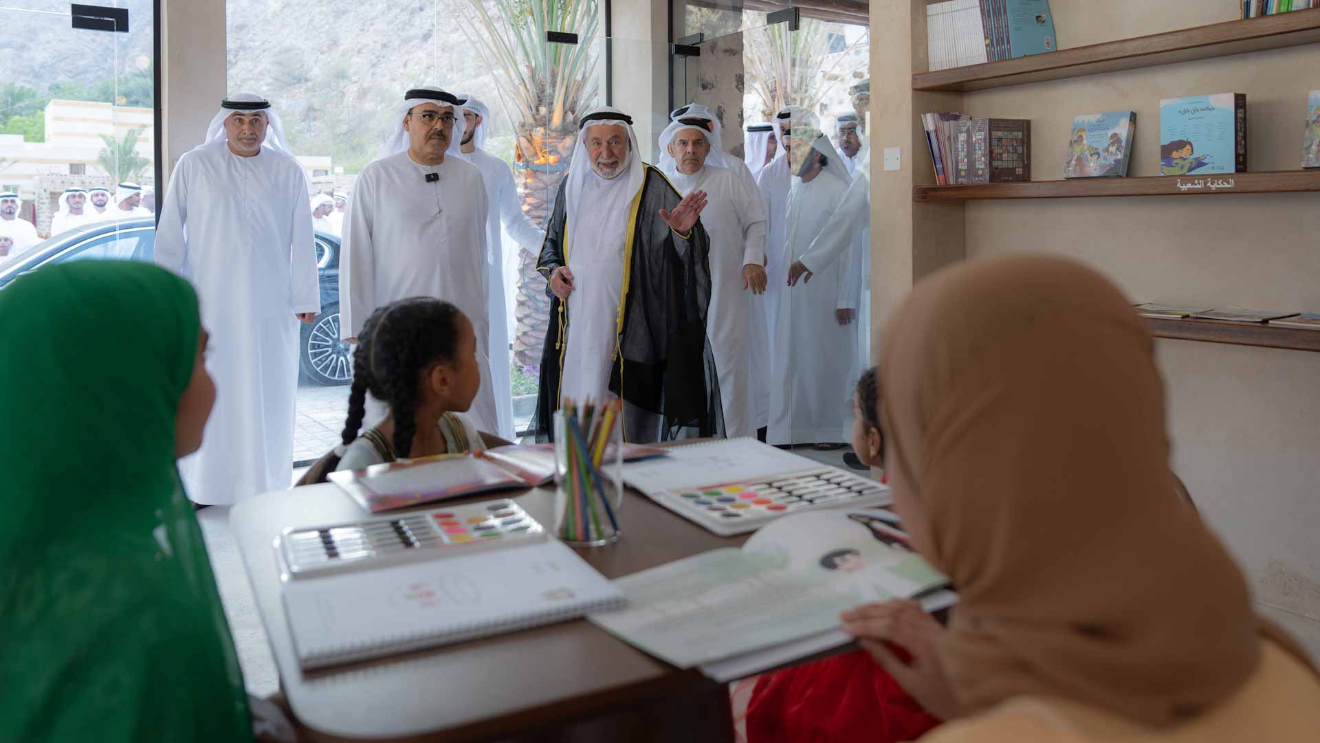 وزار سموه مكتبة ومقهى شيص الذي يحتوي على قصص وحكايات وكتب عُرضت بطريقة مبتكرة ضمن التصميم الداخلي للمقهى، كما يوفر المبنى جلسات مريحة وإطلالة خلابة على جبال ووادي شيص، مطلعاً سموه على برزة أهالي شيص التي تم تأثيثها وتكييفها وتزويدها بمرافق خدمية لاستيعاب مختلف الأنشطة والمناسبات المجتمعية التي تحتضنها المنطقة.
