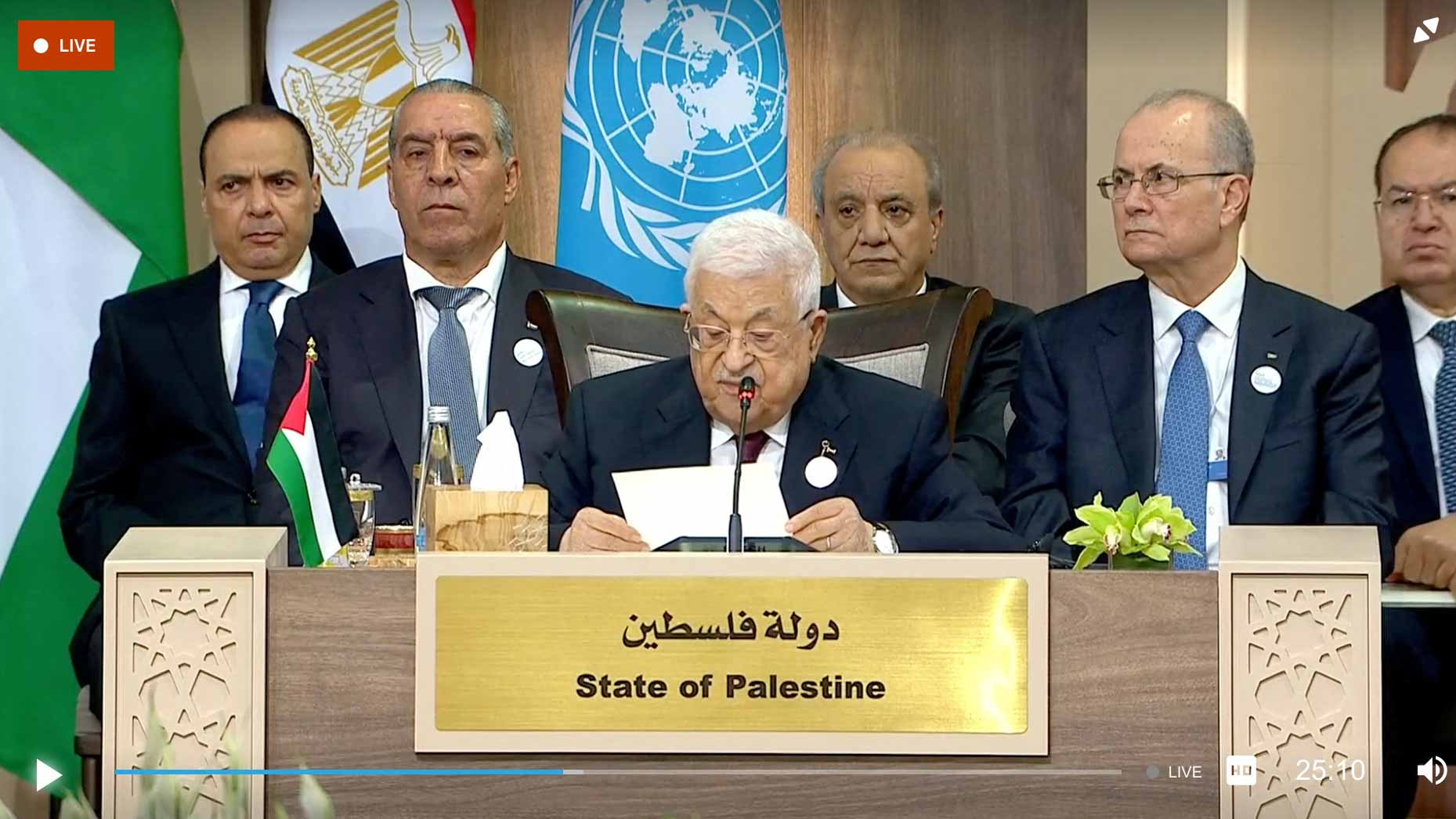 وذكر الرئيس الفلسطيني في بيان "نجدد الترحيب بالبيان المشترك الذي صدر عن قادة بريطانيا وفرنسا وكندا وموقف دول الاتحاد الأوروبي (...) ورفضهم جميعاً لسياسة الحصار والتجويع والتهجير والاستيلاء على الأرض، ومطالبتهم بوقف فوري لإطلاق النار وإدخال المساعدات الإنسانية فورا ودون عراقيل عبر الأمم المتحدة ووكالة "غوث وتشغيل اللاجئين الفلسطينيين" الأونروا".