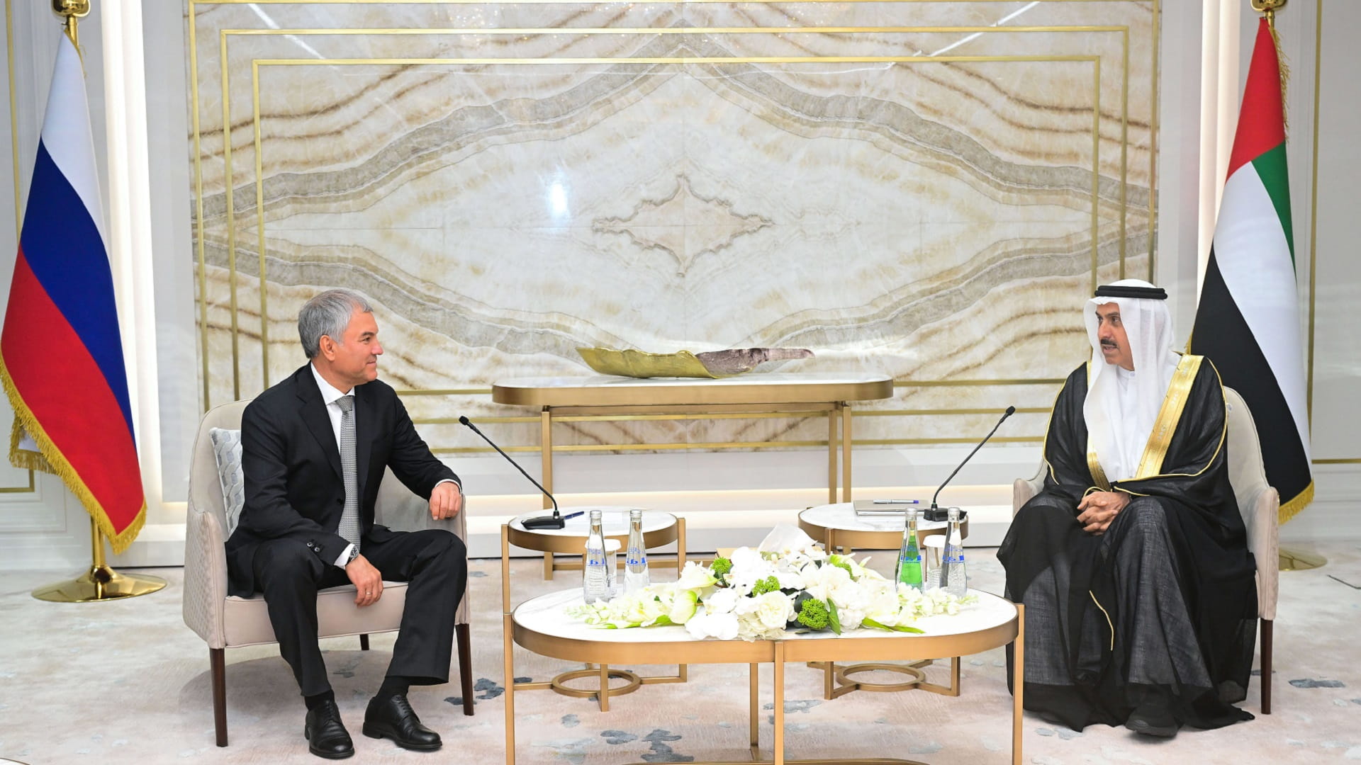 وتم خلال اللقاء استعراض أوجه التعاون البرلماني بين المجلسين، والذي يعكس عمق العلاقات الإستراتيجية التي تربط دولة الإمارات وروسيا الاتحادية، والرغبة الصادقة في تطويرها على أسس ثابتة من الصداقة والتعاون في مختلف المجالات.