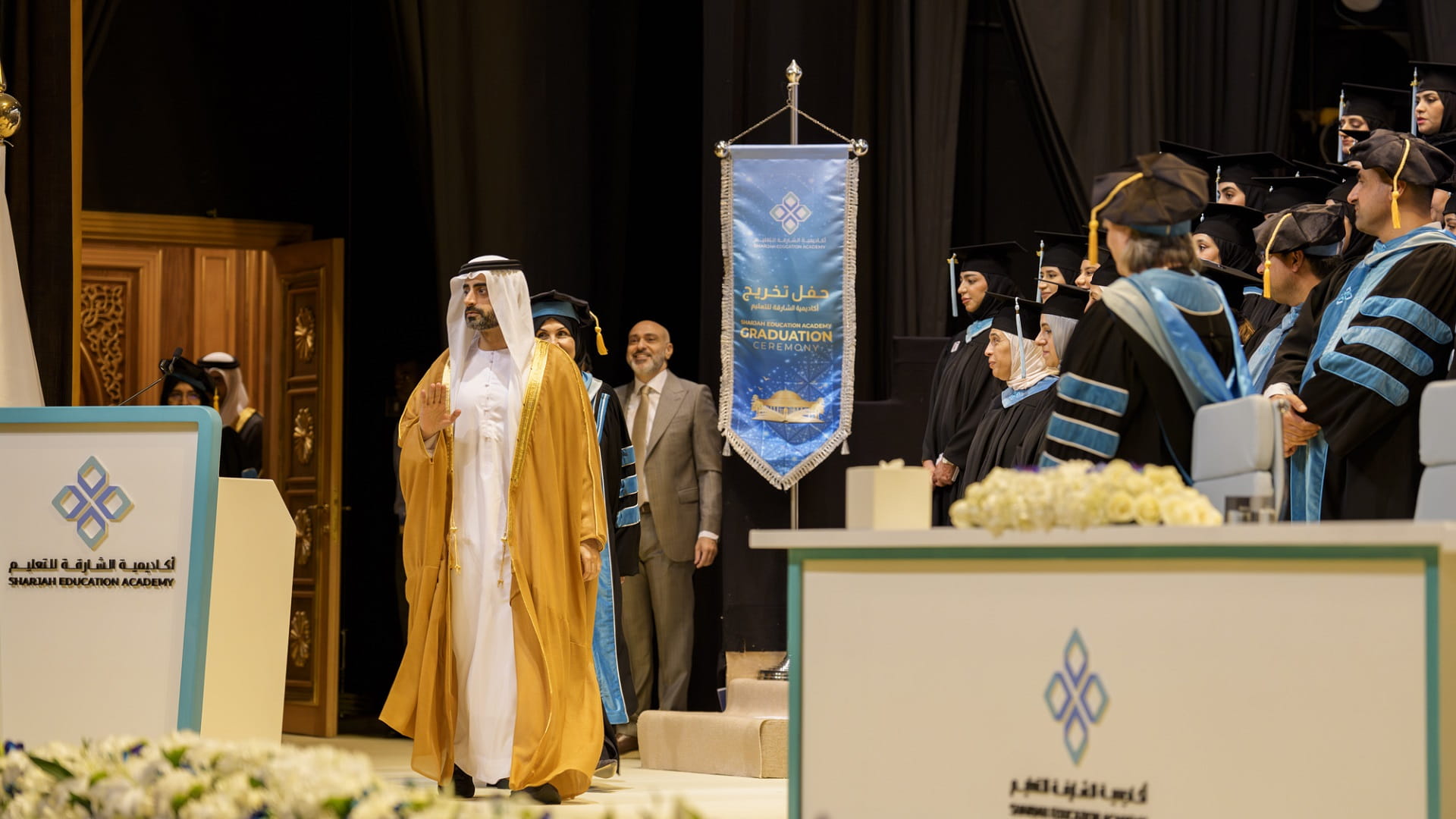 حضر حفل التخريج بجانب رئيس مكتب سمو الحاكم كل من: سعادة الدكتور منصور بن نصار، رئيس الدائرة القانونية لحكومة الشارقة، وسعادة الدكتورة محدثة الهاشمي، رئيسة أكاديمية الشارقة للتعليم، وسعادة علي الحوسني، مدير عام أكاديمية الشارقة للتعليم، وعدد من المسؤولين وأعضاء مجلس أمناء الأكاديمية، وأولياء أمور الخريجين والخريجات.
