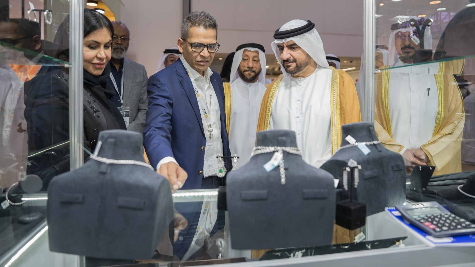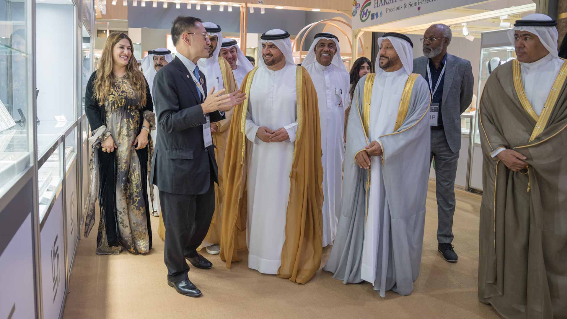 وتجوّل سموه في أروقة المعرض مطلعاً على ما يعرضه المشاركون من مشغولات وتصاميم وقطع نادرة، مستمعاً سموه إلى شرح مفصل من القائمين على الأجنحة حول نماذج من معروضاتهم والتقنيات المبتكرة في الصياغة والتصميم، إلى جانب أحدث الطرق والأساليب في قطاع صناعة وتجارة الذهب والمجوهرات، وأحدث تطوراتها وتوجهاتها على الصعيدين الإقليمي والعالمي.