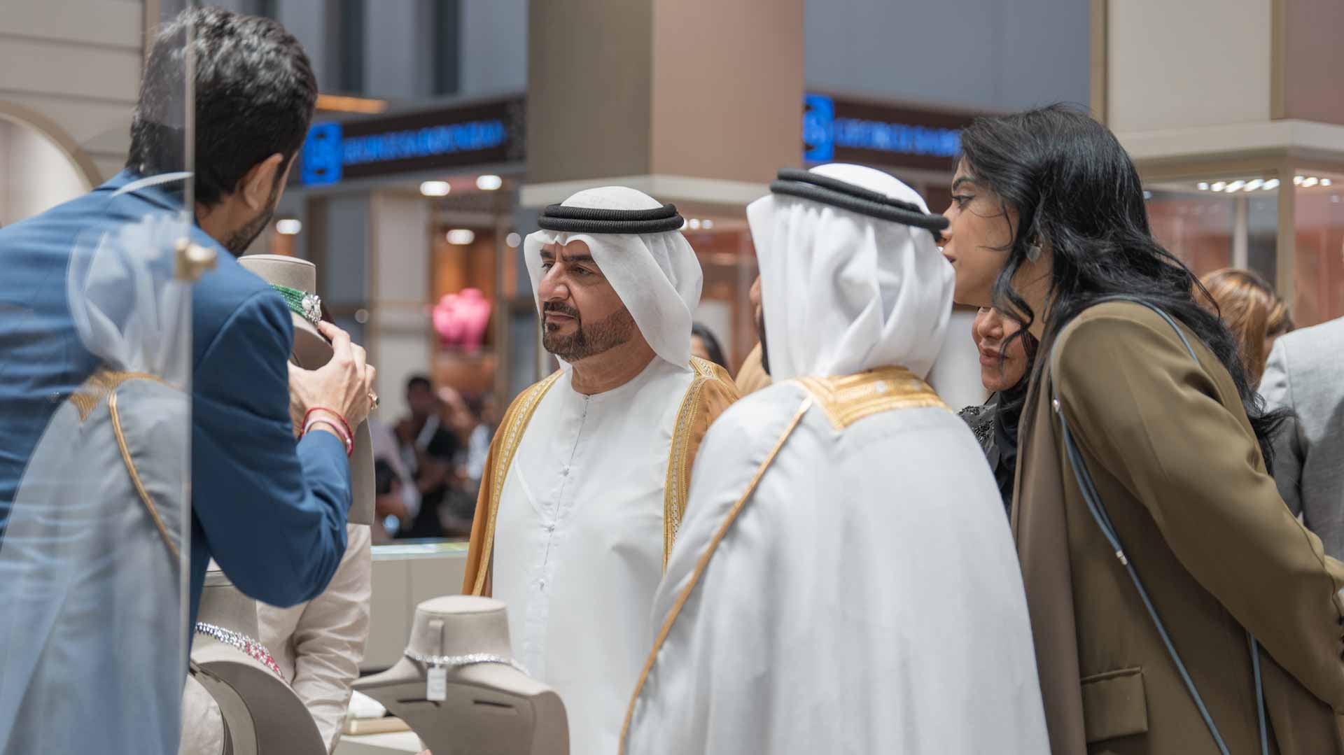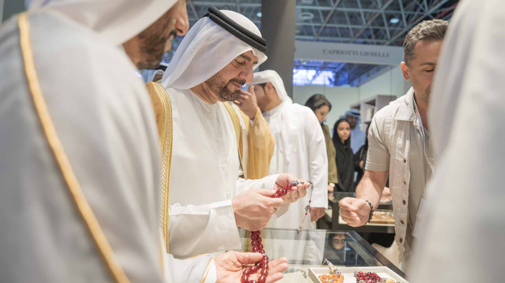 وتوقّف سمو نائب حاكم الشارقة لدى عدد من منصات العرض المحلية والعالمية بينها منصات رعاة المعرض، ومنصة صاغة الإماراتيين التي تعرض إبداعات نخبة من المُصمّمات الإماراتيات في مجال الذهب والمشغولات التي تستلهم التراث الإماراتي برؤية حديثة، وتقدّم إبداعات وتصميمات مميزة تعكس أحدث الابتكارات في عالم التصاميم.