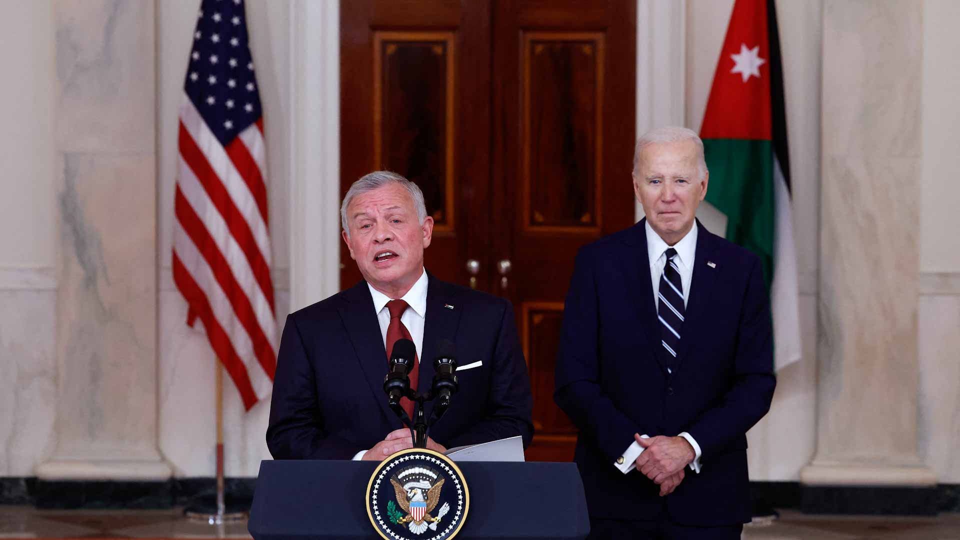 أكد العاهل الأردني الملك عبد الله الثاني، أن لا استقرار في المنطقة دون منح الفلسطينيين كامل حقوقهم المشروعة، مشدداً على أن حل الدولتين هو السبيل الوحيد لتحقيق السلام العادل والشامل، وحذر من التبعات الخطيرة لاستمرار التصعيد في الضفة الغربية والقدس.