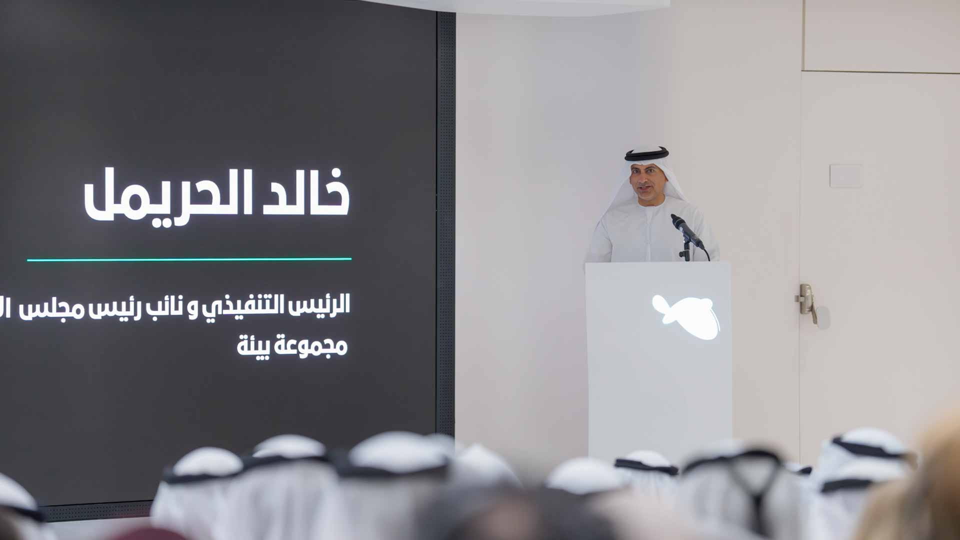 وألقى بعدها خالد الحريمل الرئيس التنفيذي ونائب رئيس مجلس إدارة مجموعة بيئة، كلمة رحب فيها بسمو نائب حاكم الشارقة والحضور، كاشفاً بأن "مدينة خالد بن سلطان" تشكّل محطة محورية لـ "بيئة" في مجال التطوير العقاري، معتبره مشروعاً رائداً يُجسّد رؤية المجموعة لإعادة رسم ملامح الحياة الحضرية، واصفاً المشروع بأنه يمثل توسعاً لمسيرة "بيئة" المتمثلة في بناء منظومة متكاملة من الحلول المستدامة في قطاعات البيئة، والطاقة، والتكنولوجيا، والرعاية الصحية.