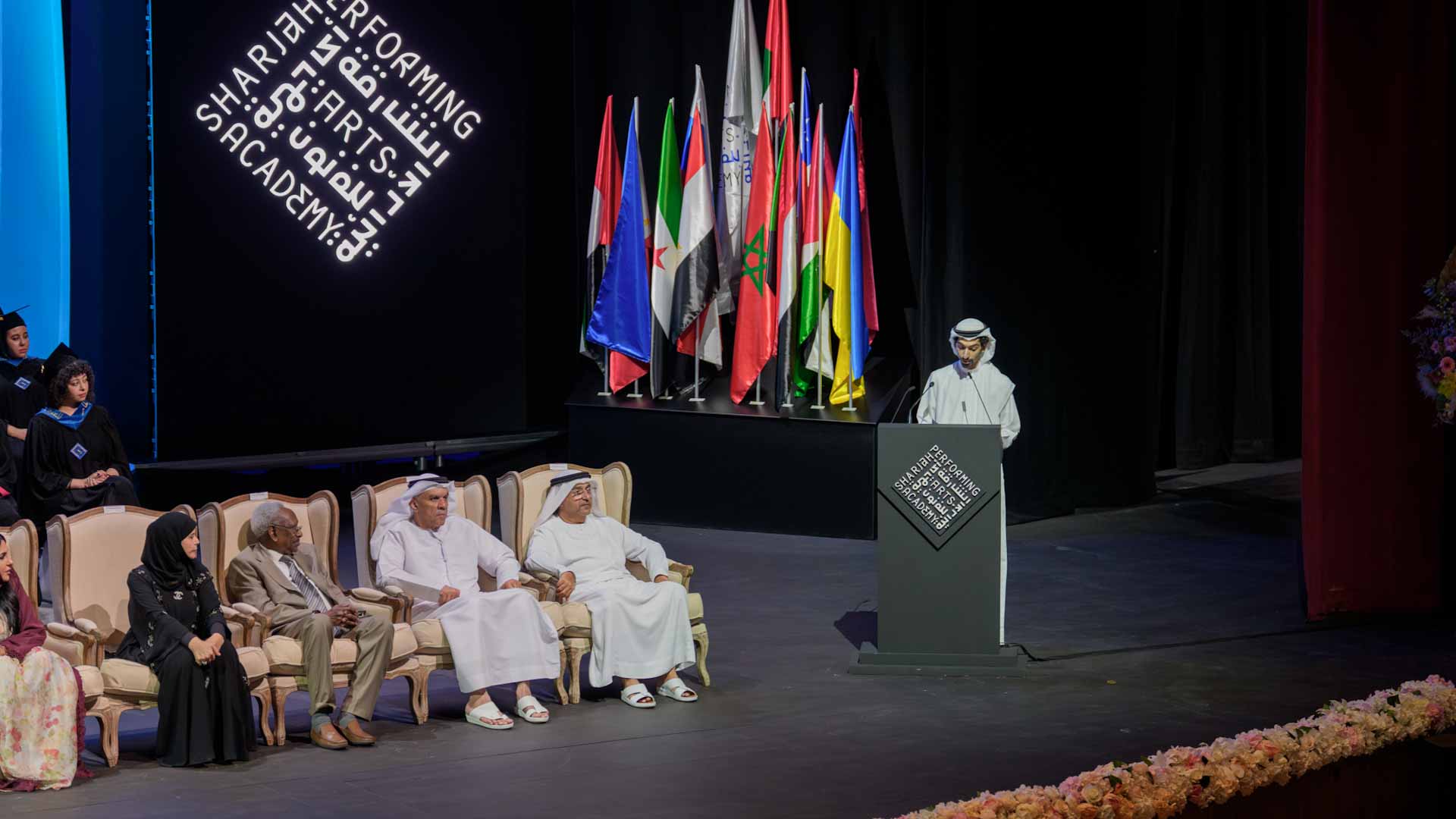 عبر صاحب السمو الشيخ الدكتور سلطان بن محمد القاسمي عضو المجلس الأعلى حاكم الشارقة، رئيس أكاديمية الشارقة للفنون الأدائية، عن سعادته وفخره بمهارات الطلبة خريجي الأكاديمية، مشيداً سموه بعطائهم الذي شاهده في أداء الطلبة على خشبة المسرح وفي الفصول وحتى يوم التخرج.