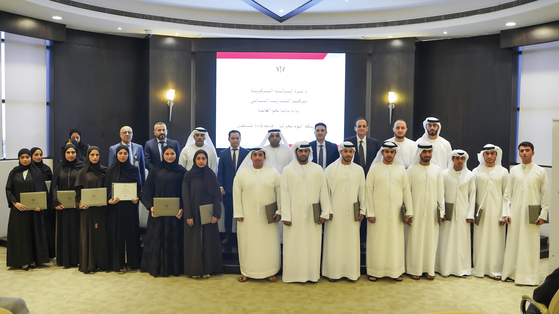 وفي ختام البرنامج التدريبي، استقبل سعادة وليد الصايغ، مدير عام دائرة المالية المركزية بالشارقة، الطلبة المشاركين في مقر الدائرة، بحضور عدد من مسؤولي الدائرة وأعضاء الهيئة التدريسية من جامعة الشارقة، حيث قام سعادته بتكريمهم تقديراً لالتزامهم وتميّزهم خلال فترة التدريب.