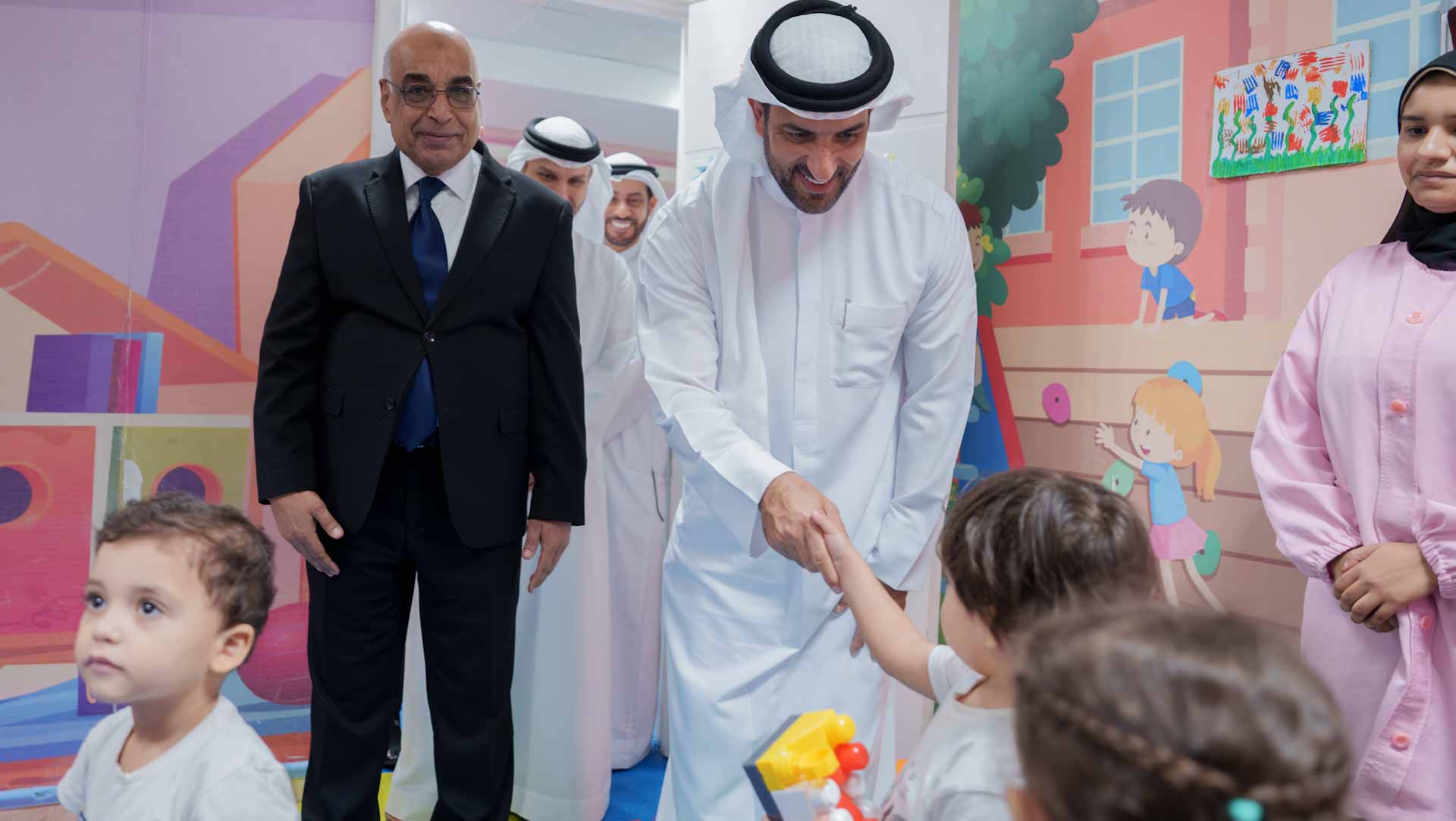 واطلع سموه على منطقة استراحة الموظفين وحضانة وزارة العدل المخصصة لأبناء العاملين والعاملات في الوزارة، متعرفاً سموه على الخدمات التي تقدمها الحضانة وأساليب الاهتمام بالرضع والأطفال والطرق التعليمية التي تهيئ الأطفال وتساعدهم في المرحلة المقبلة.