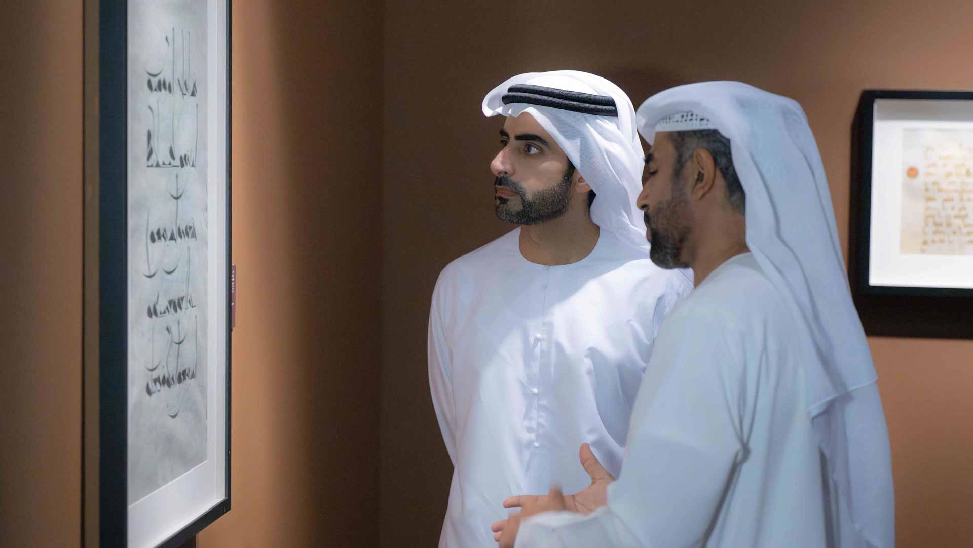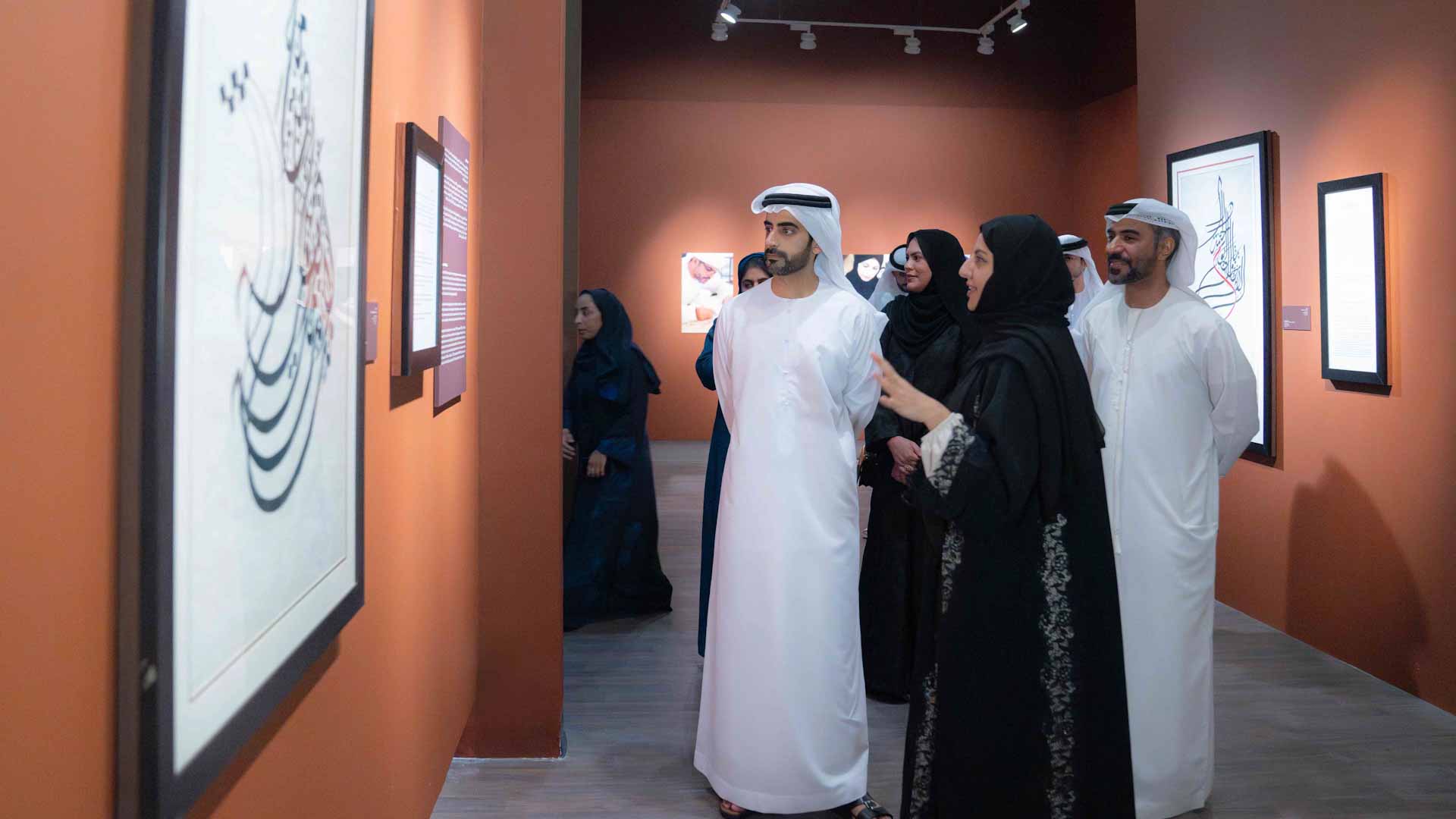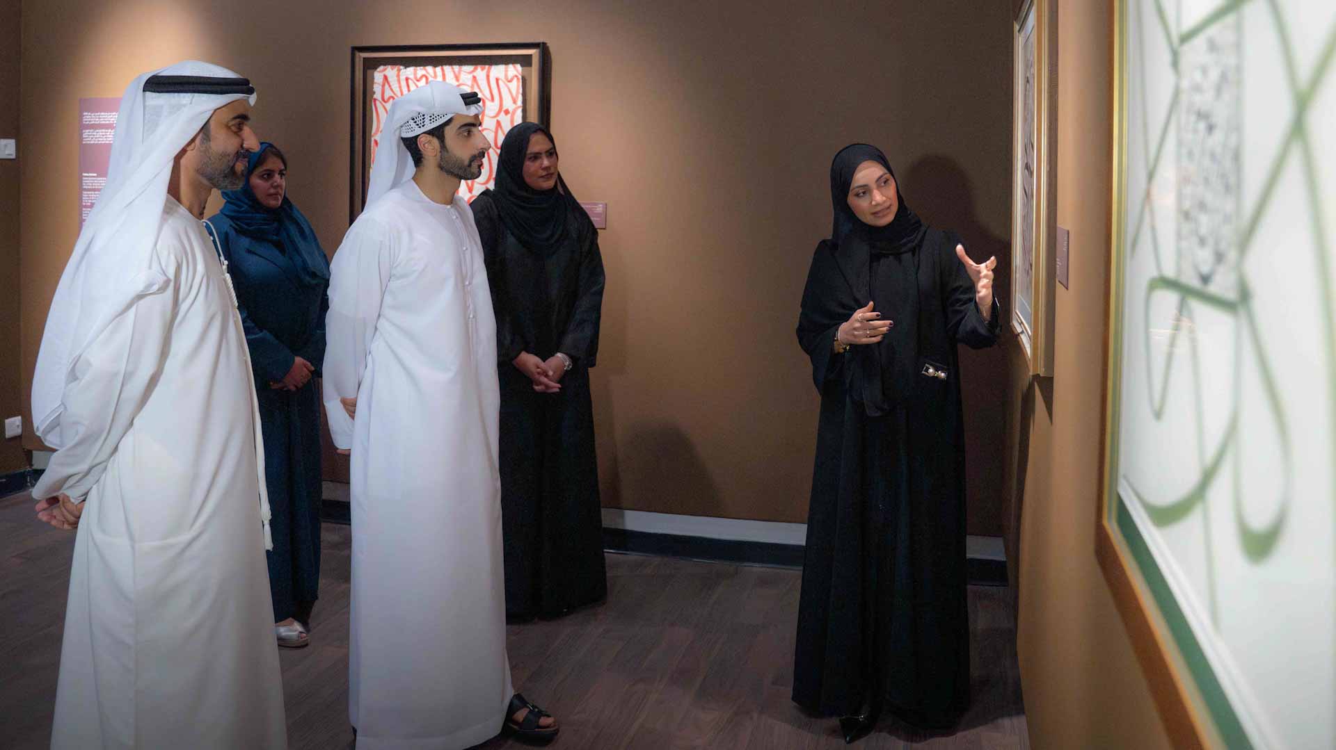 واستمع الشيخ الدكتور سالم بن عبد الرحمن القاسمي لشرح من المشاركين حول تجاربهم الفنية وأساليبهم الخطية، التي تنوعت بين استخدام الخط العربي والخط الكوفي وخط النسخ بالأسلوب الكلاسيكي الدقيق وخط الثلث الجلي، إضافةً إلى الأعمال التي جمعت بين الرسم والخط العربي والخط الديواني الجلي والعديد من الأعمال الفنية التي تحتفي بالثقافة الإماراتية وتتيح للفنان إيصال الرسائل والمشاعر من خلالها.
