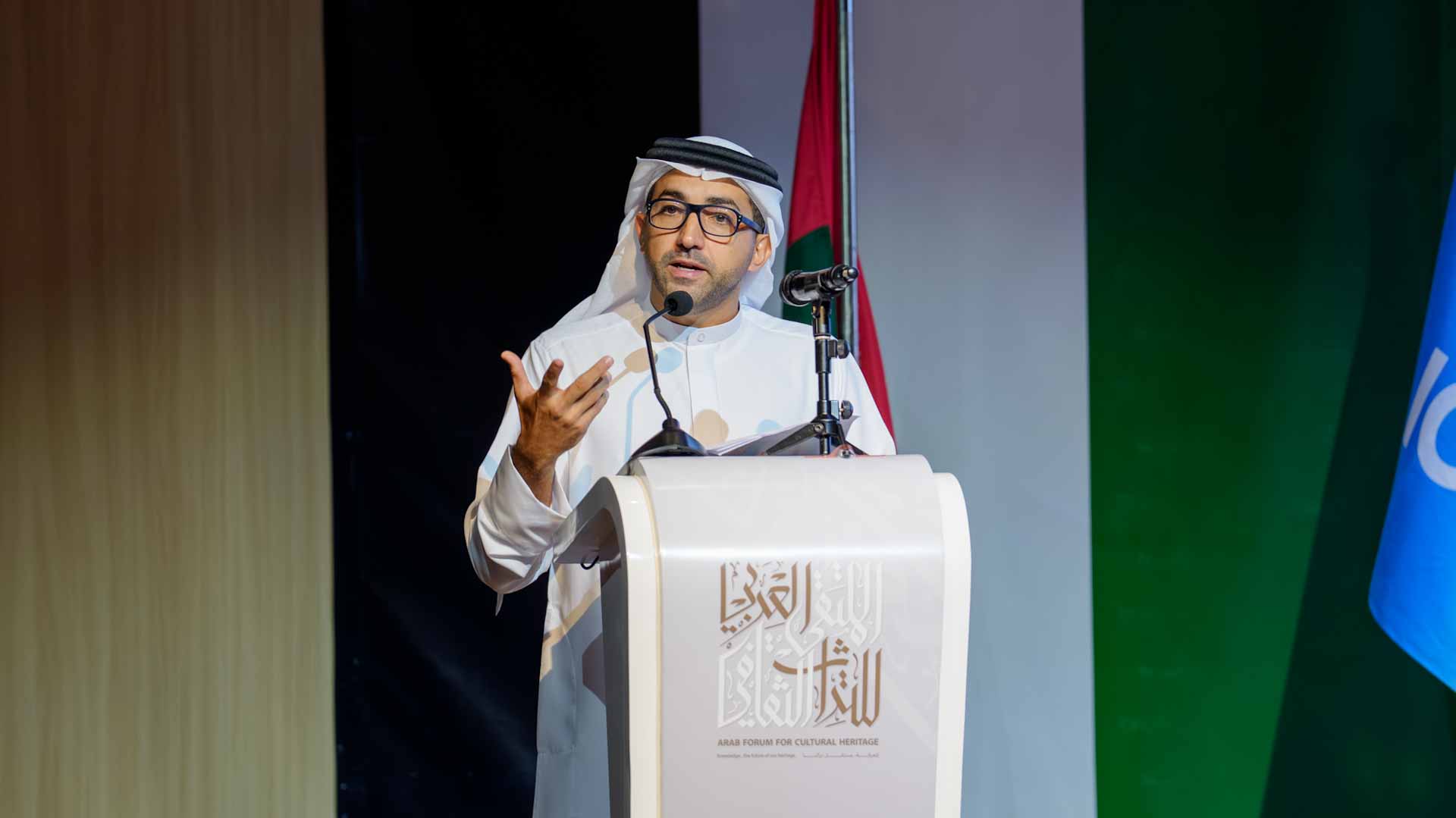 واستعرض معالي زكي نسيبة عدداً من تجارب الشباب المُلهمة داخل وخارج الدولة، مشيراً إلى أن هذه التجارب أصبحت نموذجاً إقليمياً للابتكار في صون التراث، مع تعزيز مشاركة المجتمع ونقل المعرفة بين الأجيال، مقدماً في ختام كلمته عدداً من التوصيات والأفكار حول سياسات تمكين الشباب في مجال التراث الثقافي.
