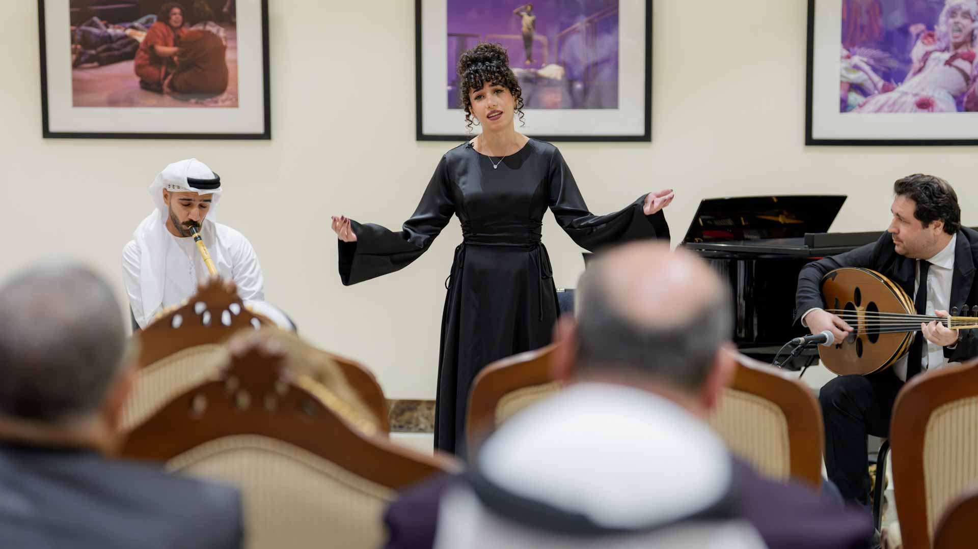 وتابع صاحب السمو حاكم الشارقة والحضور فقرات فنية قدمها طلبة كلية الموسيقى في الأكاديمية، مستمعاً سموه للمقطوعات والمعزوفات الفنية المختلفة والتي تم من خلالها استخدام العديد من الآلات الموسيقية مثل: البيانو والعود والناي، إضافةً إلى الفقرات الغنائية التي تعكس قوة المهارة التي يمتلكها الطلبة.