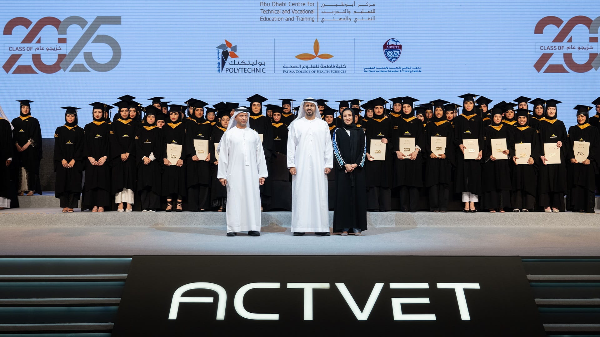 نظَّم مركز أبوظبي للتعليم والتدريب التقني والمهني حفل تخريج دفعة عام 2025 من طلبته المتميزين من بوليتكنك أبوظبي، وكلية فاطمة للعلوم الصحية، ومعهد أبوظبي للتعليم والتدريب المهني، وذلك تحت رعاية وحضور سموّ الشيخ ذياب بن محمد بن زايد آل نهيان، نائب رئيس ديوان الرئاسة للشؤون التنموية وأسر الشهداء.