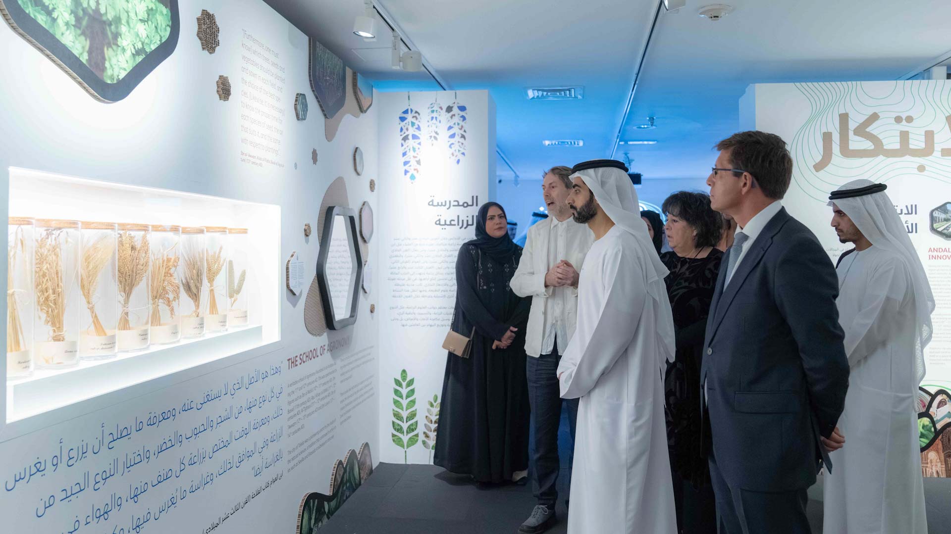 وتجول الشيخ الدكتور سالم بن عبد الرحمن القاسمي في أروقة المعرض الذي ينقسم إلى قسمين رئيسيين؛ الأول بعنوان "جنات النعيم"، ويستعرض دور الحدائق الأندلسية كفضاءات للتعايش والإبداع من خلال أربعة محاور تشمل الحديقة البستانية المنتجة، والحديقة العلمية بوصفها مختبراً حياً للمعرفة النباتية والتجارب الزراعية، والحديقة الروحية التي تعكس البعد التأملي والروحي، إضافة إلى الحديقة الشعرية التي شكلت مصدر إلهام أدبي وفني. أما القسم الثاني يحمل عنوان "البلد الطيب" ويركز على الأنظمة الإنتاجية المعقدة في الأندلس، ويسلط الضوء على تقنيات الري والزراعة البعلية، والحرف اليدوية والصناعات التقليدية، إلى جانب الأسواق وشبكات التبادل التجاري، والصناعات بما يجسد التفاعل العميق بين الإنسان وبيئته.
