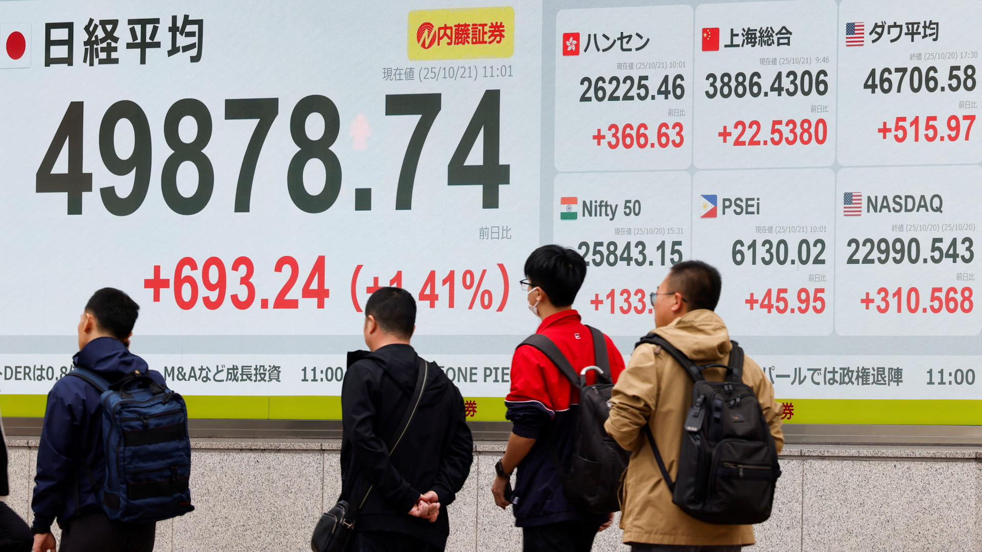 وتقدم نيكي 225 بنسبة 1.4 % إلى 49871.95 نقطة في التعاملات المبكرة، ليصبح على مسار تسجيل إغلاق قياسي إذا استمرت القوة الدافعة الحالية.